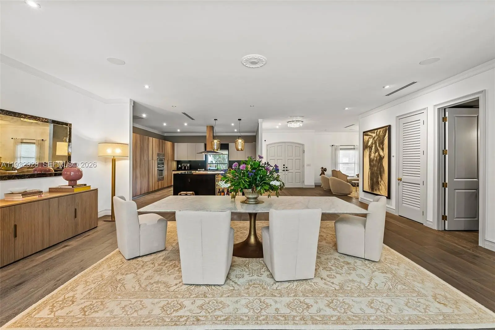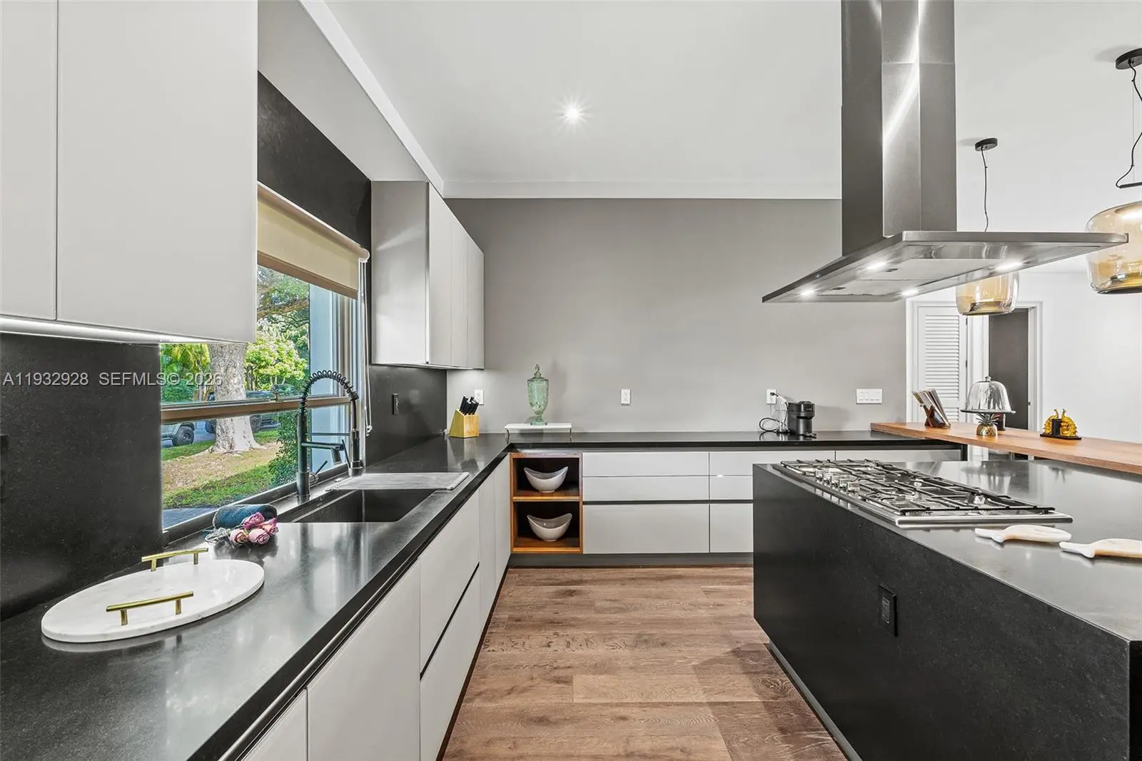 Live well in the highly coveted Bay Point, one of Miami’s most exclusive and private gated communities. This spectacularly renovated residence offers 5 bedrooms, 5.5 bathrooms, and a dedicated office, featuring wood floors, soaring ceilings, and a modern open-concept layout. The home includes formal living and dining rooms, along with a spacious family room ideal for everyday living and entertaining. The primary suite is a true retreat, complete with a private office, sliding doors opening to the backyard garden, and a spa-like bathroom finished in elegant white marble. The modern Italian kitchen showcases stainless steel appliances and a dramatic oversized center island, seamlessly connecting to the main living areas. Ideally located, Bay Point provides easy access to the Design District, Miami Beach, Midtown, and Downtown Miami.