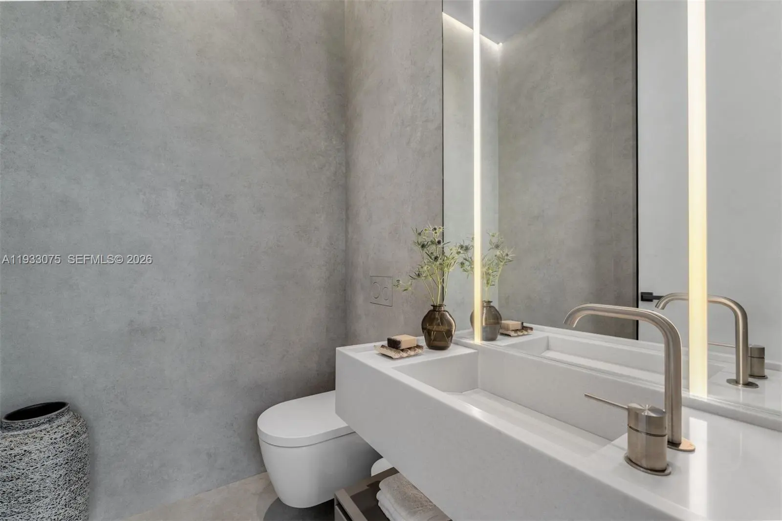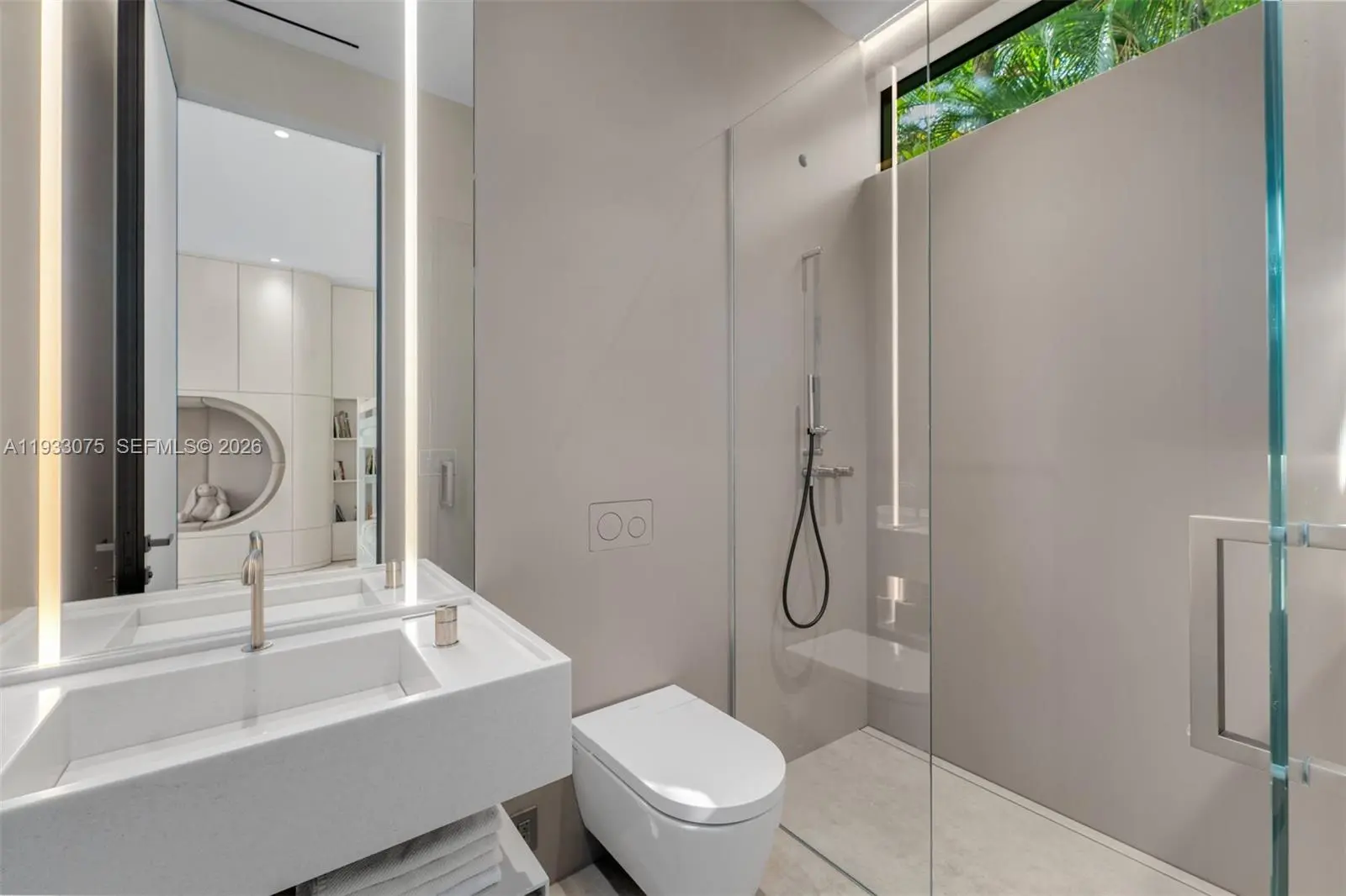 Welcome to a fully re-envisioned Bay Point masterpiece, designed by a world-renowned architect with uncompromising attention to detail. From the moment you arrive, the newly designed driveway frames the home in marble, setting the tone for what lies within. Every surface has been thoughtfully curated—from the fully custom kitchen with porcelain countertops to the layered stone and textural elements that define both the interior and exterior. The home is designed to feel seamless at every touchpoint, creating a refined, cohesive experience throughout. The well-crafted floor plan features European wood flooring, 10-foot ceilings, and a natural separation of five bedrooms and five-and-a-half baths. The entire second level is dedicated to a grand 1,000-square-foot primary suite with a custom office, dual closets, and a luxurious primary bath. The outdoor living experience is equally impressive, featuring new landscaping, an outdoor kitchen, a saltwater pool, and a sauna and cold plunge—creating a true longevity-focused retreat. Solar panels and a generator offer sustainable efficiency and added peace of mind. An exceptional opportunity to own a home where design, function, and lifestyle converge.