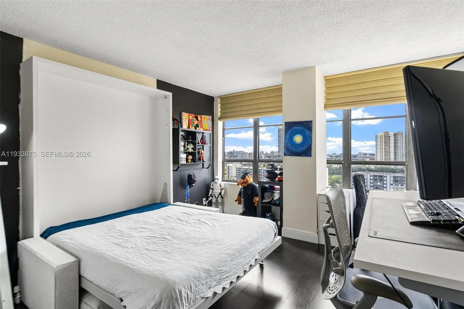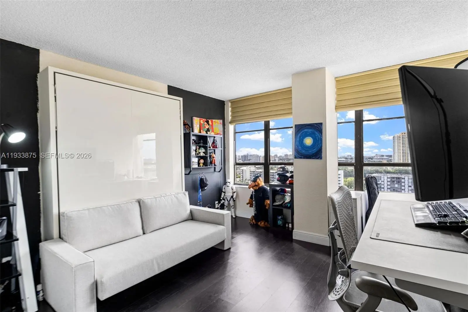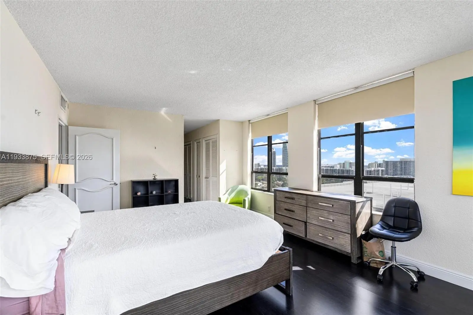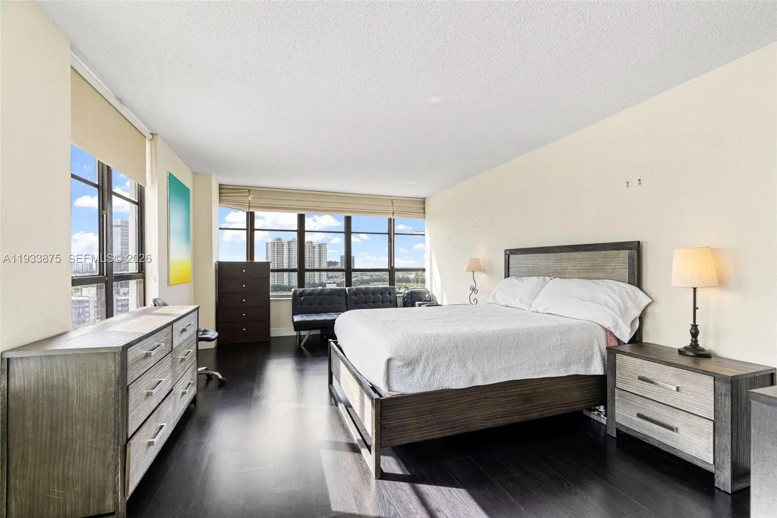 The Only 3 bedroom currently available for sale at Olympus, spacious Corner Unit with lots of natural light. This rare residence features sweeping water and city views, rich dark wood floors, and fully built-out closets—including a spacious walk-in in the primary suite. Newer A/C , 3 storage areas, Lush landscaping, Multi-million dollar Clubhouse, State-of-the-art Gym, Sauna, 2 Heated pools, 4 Tennis courts, BBQ & Self-car wash. Walk or take the Free Shuttle to Shops & Dining. Minutes away from the Beach. The building went through 50 years recertification. Easy to show