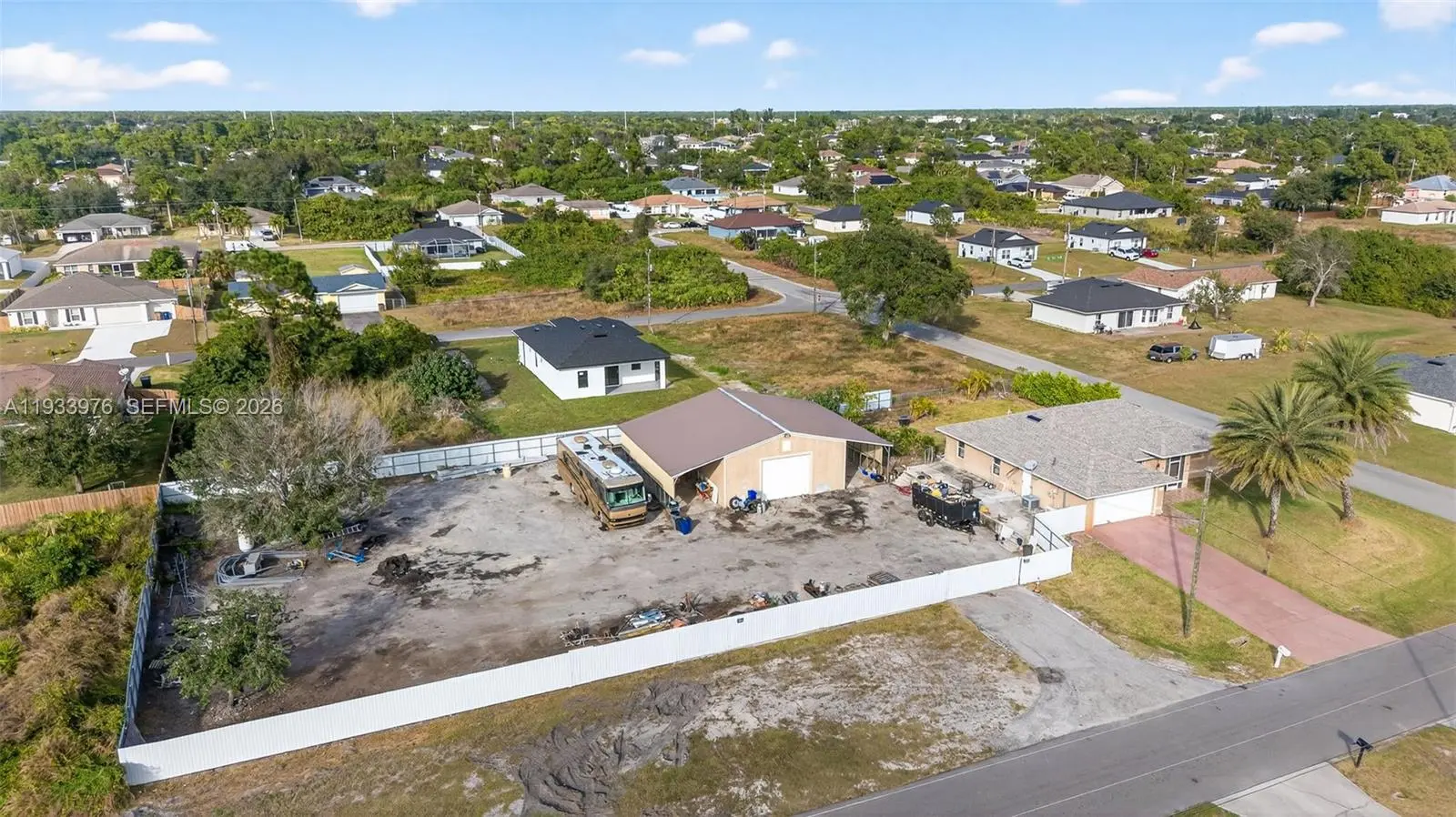 $15,000 towards buyer's closing costs! Price Improved!| Mixed-Use Corner Lot | Lehigh Acres, FL Exceptional mixed-use opportunity on a 21,780 sq ft corner lot, just 3 minutes from Walmart with outstanding visibility and easy access. The well-maintained 3-bed, 2-bath home with garage (built 2005) has been fully refreshed — new roof, new A/C, new kitchen, renovated bathrooms, and fresh interior and exterior paint. The standout feature is a 2,000 sq ft metal barn valued at $80,000, offering approx. 1,500 sq ft under air with 14-ft ceilings, metal roof, Duroc/stucco exterior engineered for 185 mph wind resistance, and an 8-inch reinforced concrete foundation. Equipped with 120V/240V electrical, two 12'x12' roll-up doors, a 36" walk-in door, interior lighting, and exhaust ventilation — ideal for storage, workshop, or approved business use. Residential and commercial mixed-use zoning offers flexible possibilities. An adjacent paved lot is available for purchase, providing room for future expansion. Buyer to verify permitted business uses.