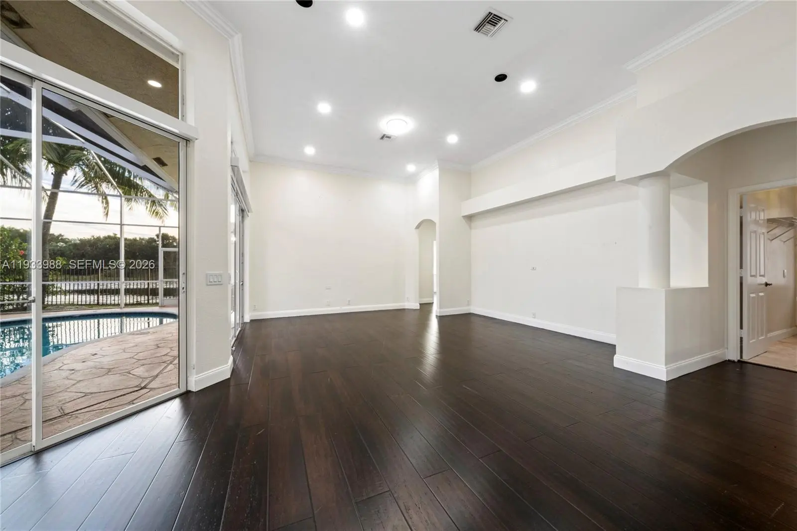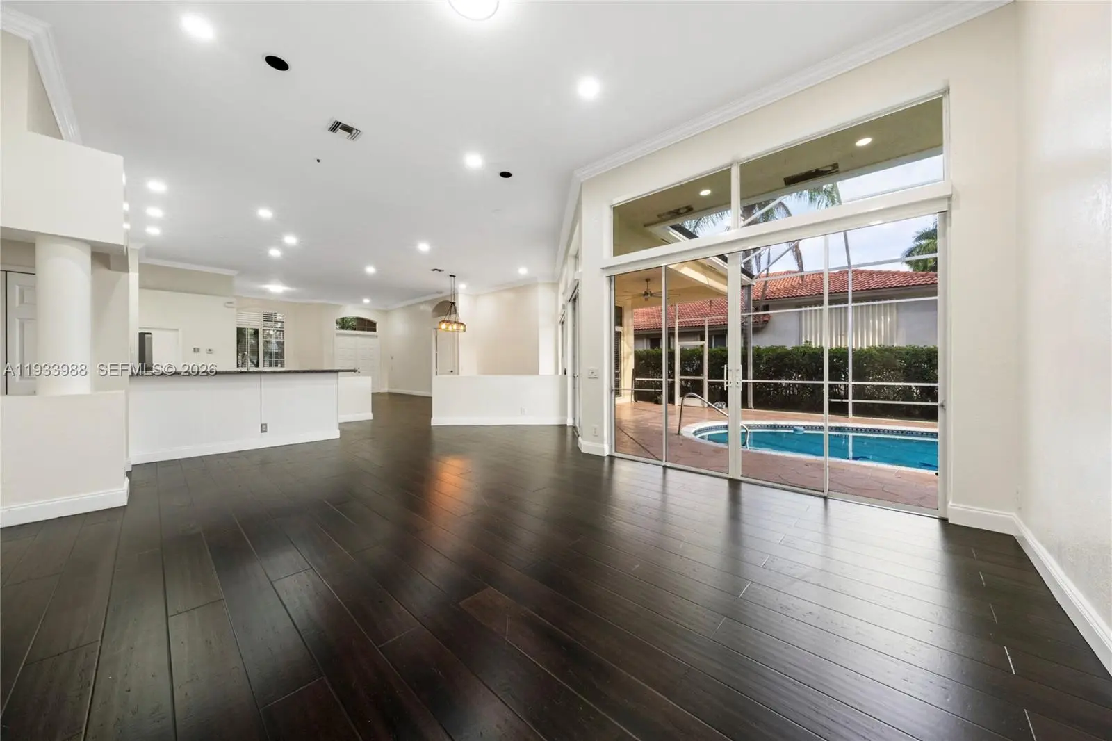 Beautiful LAKEFRONT home in Weston Hills Country Club, ready to move in! This home features 5 bedrooms and 4 full bathrooms, high ceilings with crown moldings, a lake view, a pool, and an open concept. Lots of natural light throughout this beautiful home, with plantation shutters, and BRAND NEW wood look tile floors. A spacious kitchen, granite countertops & SS appliances. California closets throughout. NEW AC. A RATED SCHOOLS! Please note that the floors have been changed in the home. It is no longer dark wood it is similar to the tile wood look floors that are in the picture of the master bath. Looks great!