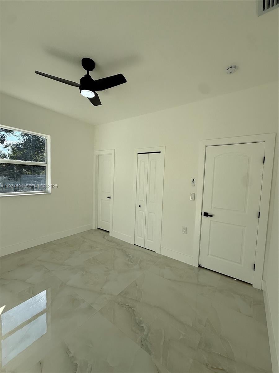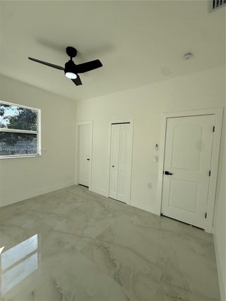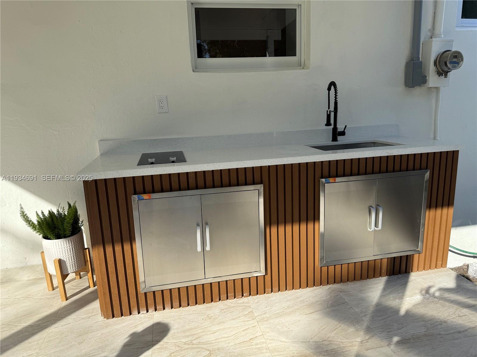 Discover modern living at its finest in this charming 3-bedroom, 2-bathroom home. This property boasts a new roof (installed in 2025) and impact-resistant windows, along with ducted central air conditioning. Inside, you'll find an open layout with high-quality finishes, a beautiful living room, and a professionally equipped kitchen with new appliances and quartz countertops. Concrete and porcelain tile flooring is a highlight throughout. The bedrooms are spacious and bright, and the primary suite includes a custom walk-in closet and designer bathrooms. Enjoy the covered carport, the expansive rear deck with an outdoor kitchen, and a large backyard with room for a pool or future expansion. Experience comfort and style in this move-in ready gem!