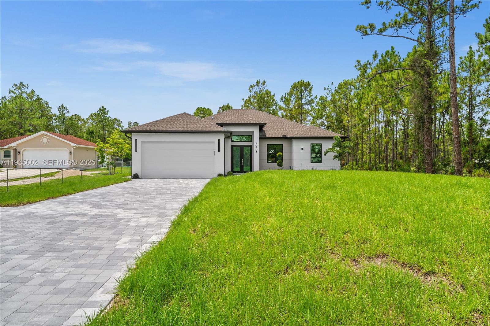 Welcome to your brand-new oasis, perfectly positioned in a highly desirable, fast-growing area right in the center of “the Estates.” READY TO MOVE IN. This stunning home sits on a 1.14-acre 100% upland lot, offering the perfect blend of security, comfort, and privacy—all built to the latest Florida construction codes for peace of mind. Step inside and enjoy nearly 1,800 sq.ft. of A/C living space and 2,950 sq ft under roof, with a bright, open layout designed for modern living. You’ll love the chef-inspired kitchen, quartz countertops, a beautiful waterfall island, soft-close custom cabinetry, and top-of-the-line stainless steel appliances. Each of the 4 bedrooms features built-in closets, including a Primary suite and 3 full bathrooms. The two-car garage comes with an elegant epoxy finish, while your whole home benefits from a premium reverse osmosis water filtration system. Luxury and practicality meet with designer bathrooms and Kitchen, pavered driveway and an over sized backyard—perfect for relaxing or hosting friends. There’s even room to add a guest house or a sparkling pool to boost your investment. No HOA and no pet restrictions mean total freedom. Enjoy a peaceful retreat surrounded by nature, just minutes from Ave Maria, Naples, award-winning schools, restaurants, and the beach. This is more than a house; it’s a lifestyle upgrade in a vibrant, up-and-coming community. Home warranty included—make this dream yours today