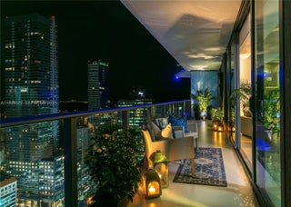 Experience elevated urban living from this spectacular 41st-floor corner residence with sweeping city and water views in every direction. Thoughtfully curated with over $200,000 in quality upgrades and designer furnishings, this home blends modern luxury with timeless elegance. A reconfigured layout maximizes space and natural light, featuring custom closets and built-ins rarely found at this level. Floor-to-ceiling glass opens to one of the largest wraparound balconies in the building, creating a true glass residence in the sky—ideal for entertaining or relaxing above the city. Located on coveted South Miami Avenue in the heart of Brickell, enjoy immediate access to premier gyms, boutiques, grocers, acclaimed restaurants, and nightlife. Amenities include 24-hour security, front desk and valet services, a rooftop pool, vibrant lower pool deck with top-rated Marriott service, and a world-class restaurant below. Offered fully furnished and move-in ready with one conveniently located parking space. Rarely available and turnkey. Comparable sales include Residence 4601 (non-upgraded, unfurnished) sold at $1.2M and Residence 4205 (same size 3/3, non-upgraded, unfurnished) sold at $1.15M. Superior finishes, views, and value set this residence apart