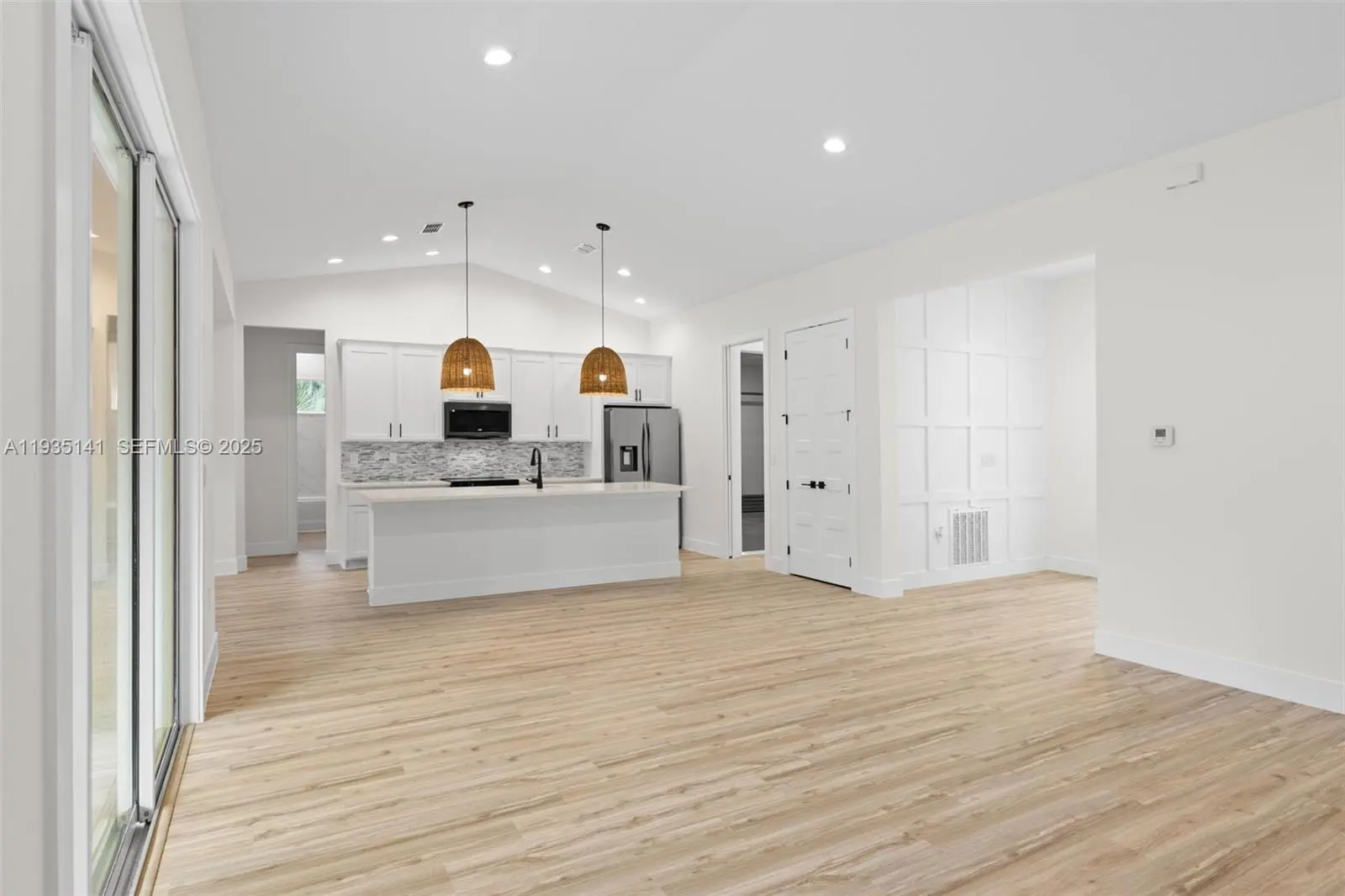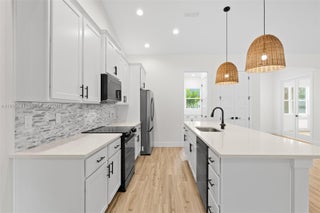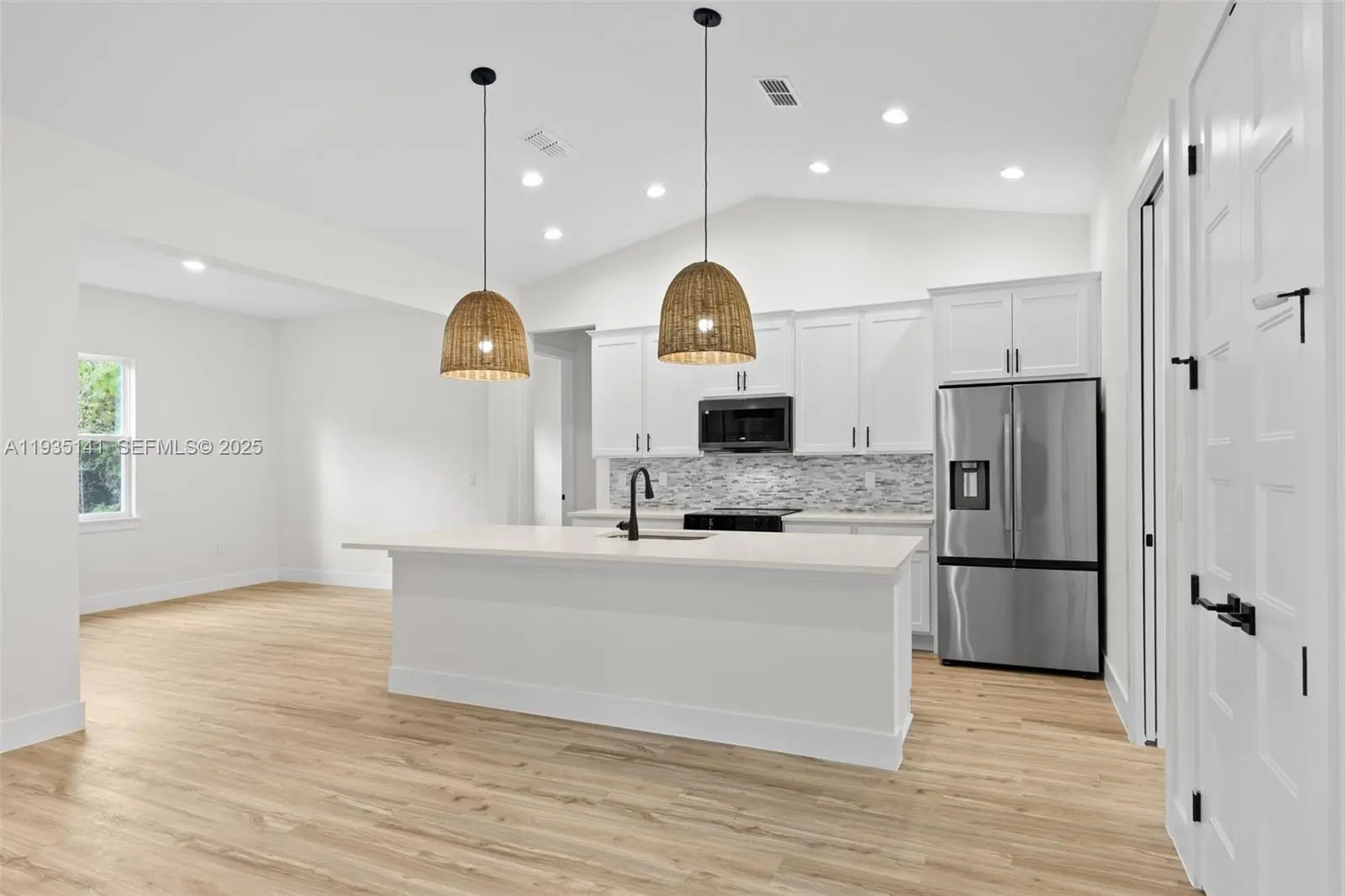 Experience modern luxury in this new build completed in 11/2025, showcasing premium finishes and thoughtful craftsmanship throughout. This home features stunning quartz countertops, 10-ft ceilings, and vaulted ceilings that enhance the bright, open layout. The kitchen is equipped with 42'' upper cabinets and quality details designed for both function and style. Interior upgrades include 8-ft interior doors, 8-ft garage doors, durable LVP flooring, and bathrooms finished with ceramic tile to the ceiling for a clean, elevated look. Enjoy added peace of mind with a front impact door and a whole-home water filtration system. The home offers a full-service laundry room and a beautifully designed covered lanai, perfect for relaxing or entertaining year-round. This brand-new residence blends comfort, elegance, and modern living—move-in ready and built to impress.