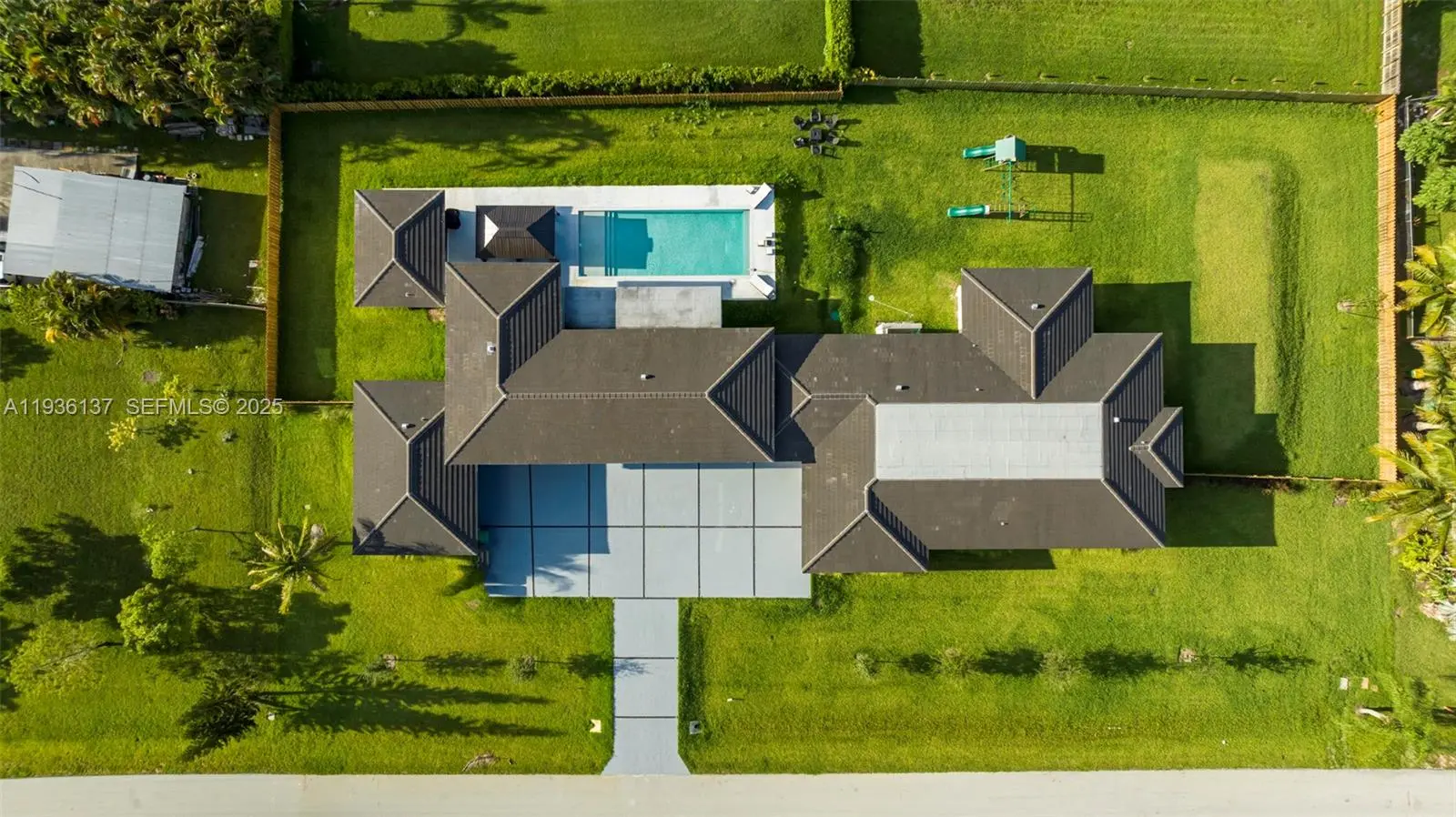 A rare opportunity to own a beautifully built 2022 estate in the highly sought-after Plantation Acres community. This expansive 8-bedroom, 7-bath residence spans approximately 7,000 sq ft and showcases impressive 15-foot vaulted ceilings, a heated pool, game room, and private home theater. Designed for both comfort and entertaining, each bedroom offers generous space, while the primary suite serves as a serene retreat. Located just minutes from Fort Lauderdale and Hollywood beaches, Sawgrass Mills, premier golf courses, and within walking distance to American Heritage School. Zoned for an equestrian-friendly lifestyle, this move-in-ready home blends luxury, privacy, and convenience in one exceptional offering.
