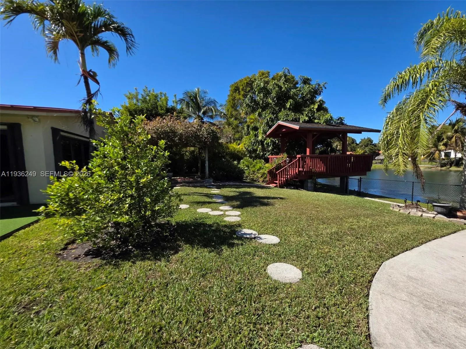 Welcome to this beautifully maintained 1974 waterfront home located in the highly desirable and quiet community of Kendale Lakes. This spacious residence offers breathtaking lakefront views and a seamless indoor–outdoor lifestyle, perfect for both relaxing and entertaining. The home features a large, open kitchen and an expansive family room filled with natural light and stunning views of the water. Sliding doors throughout the living areas open completely to the oversized deck, allowing you to effortlessly blend indoor and outdoor living—ideal for gatherings, entertaining, or enjoying peaceful sunsets by the lake. Surrounded by lush landscaping, the property offers privacy and a serene atmosphere rarely found. A circular driveway provides ample parking and adds to the home’s impressive curb appeal. With generous living spaces, tranquil lake views, and a prime location in a quiet neighborhood, this home is a rare opportunity to enjoy Florida living at its finest. ALARM AND SURVEILLANCE CAMARAS AT PREMISES