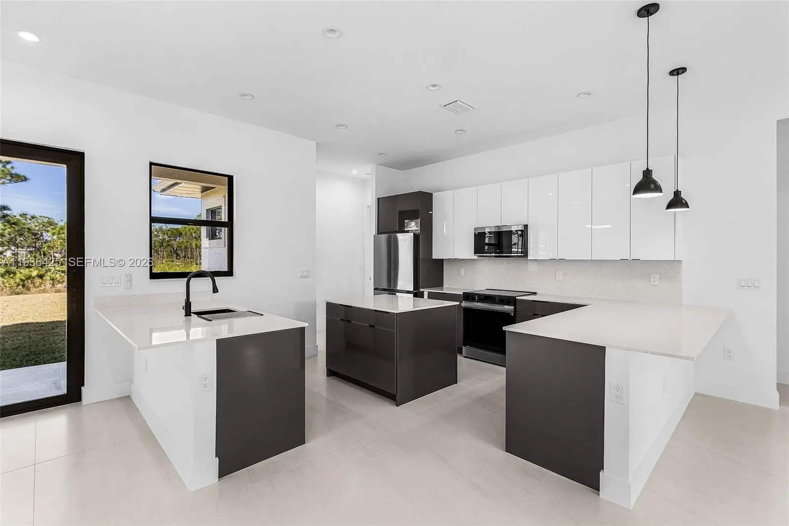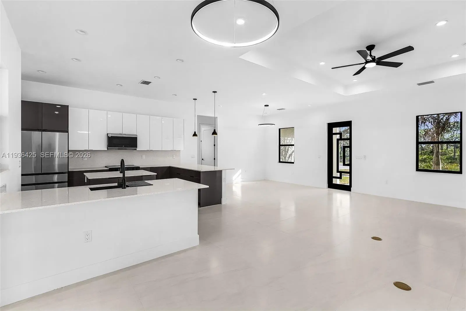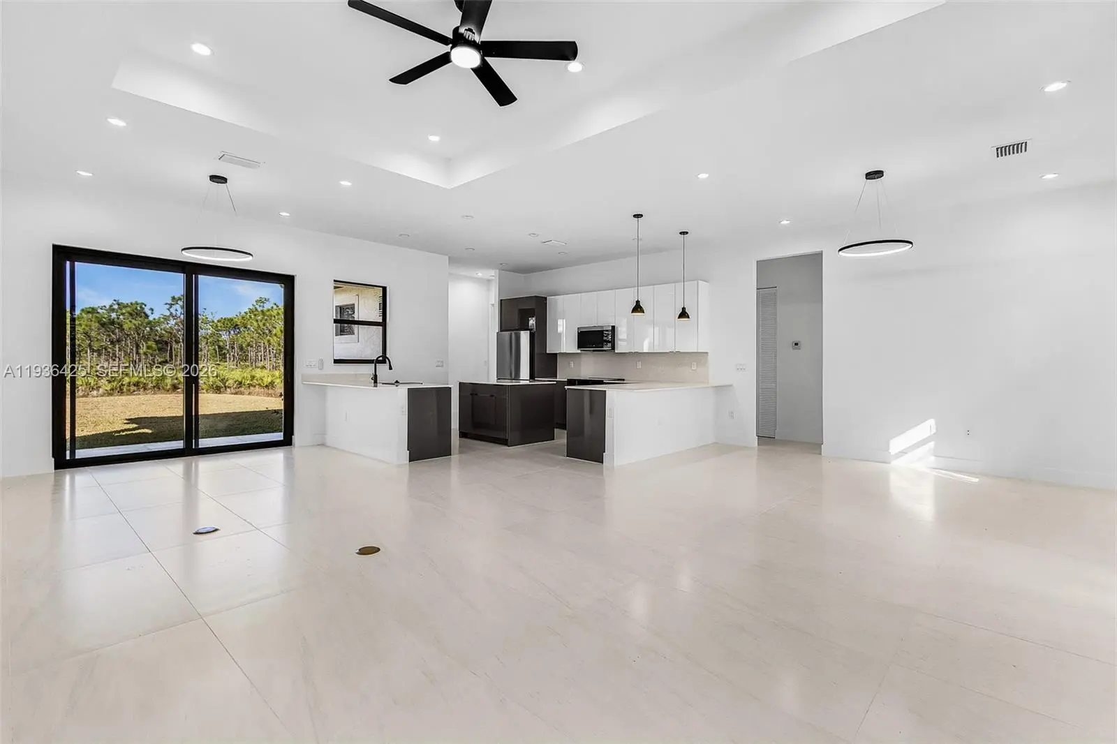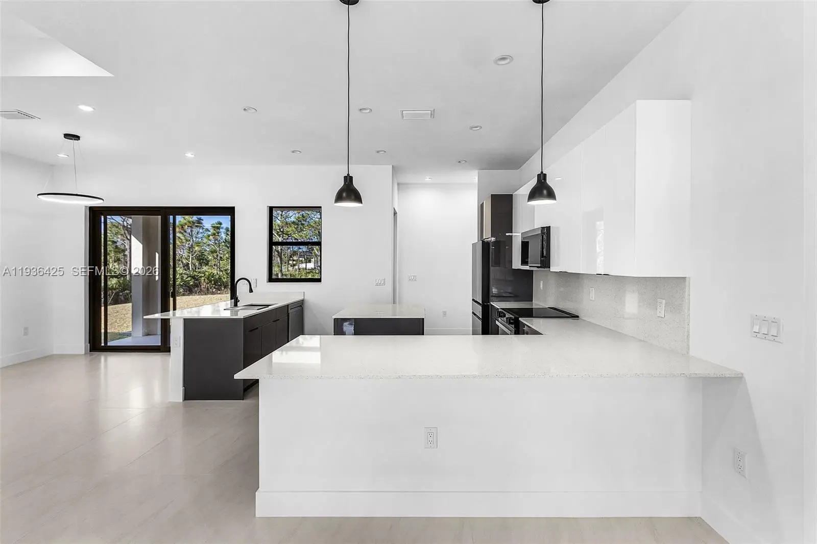 Discover a rare opportunity to own a custom-built 2025 luxury estate in the heart of Bokeelia, where privacy, space, and modern elegance come together. Situated on an expansive 0.9-acre, this thoughtfully designed 4-bedroom, 3-bathroom residence offers elevated living just steps from serene lake views and Southwest Florida’s natural beauty. This contemporary single-story home showcases high ceilings and abundant natural light. Open-concept layout, designer kitchen with a cooking island, premium finishes, and an inviting living area that flows to the covered lanai—perfect for entertaining or relaxing. The split-bedroom floor plan provides exceptional privacy, highlighted by a luxurious primary suite with a spa-inspired bathroom, walk-in closets, and refined details throughout. A versatile additional bedroom and den/office space offer flexibility for guests, family, or remote work. Designed for both comfort and function, the property includes a three-car garage, impact windows and doors, concrete block construction, and outdoor living—pool, pergola, or garden oasis—on this generous lot. Enjoy the tranquility of country-style living while remaining close to Pine Island amenities, marinas, boating, and Southwest Florida’s best lifestyle offerings. The pool is currently under construction, offering the buyer the opportunity to customize certain design elements within the seller’s budget. A truly exceptional opportunity to build and live in the Florida lifestyle at its finest.