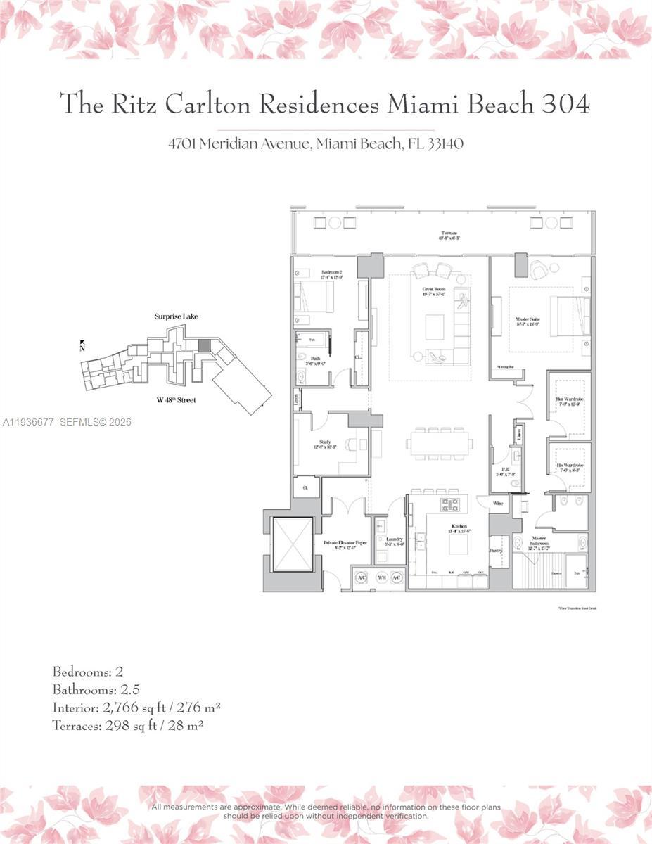 EXPERIENCE TRUE LUXE LIVING AT THE RITZ - CARLTON RESIDENCES, BOASTING UNOBSTRUCTED WATER VIEWS AND 12FT CEILINGS THROUGHOUT! Private elevator foyer entry into 2,766 SF of interior living area + large waterfront terrace spanning the full width of the apartment. 2 Bedrooms + Den & 2.5 Bathrooms. 12 FT ceilings & floor-to-ceiling windows, showcasing serene water & Miami Beach sunrise views. An open-concept layout seamlessly integrates the living and dining areas, delivering an efficient, flexible space designed for both hosting and everyday comfort. Piero Lissoni custom-designed Boffi chef's kitchen features a gas cooktop, Gaggenau appliances, & Zucchetti fixtures. The living area includes a large custom-built-in cabinet & a built-in workspace. Spacious Primary Suite, with dual walk-in closets & the Primary Bathroom features a double vanity, a glass-enclosed shower, and an oversized soaking tub. Guest Suite with water views & built-in marble desk area. Ample Den is perfect for an office, sleeping area, or media room, with a large closet. 2 parking spaces + valet for guests. The Ritz-Carlton Residences, designed by Award-Winning Architect Piero Lissoni, features Luxury Resort-Style Amenities, including a Full-Time Concierge, Gym, Spa, Movie Theater, Party Room, Golf Simulator, and Art Studio. The building sits on 7 Acres of lush gardens and features a Rooftop Pool with an outdoor grill and a Private Marina.
