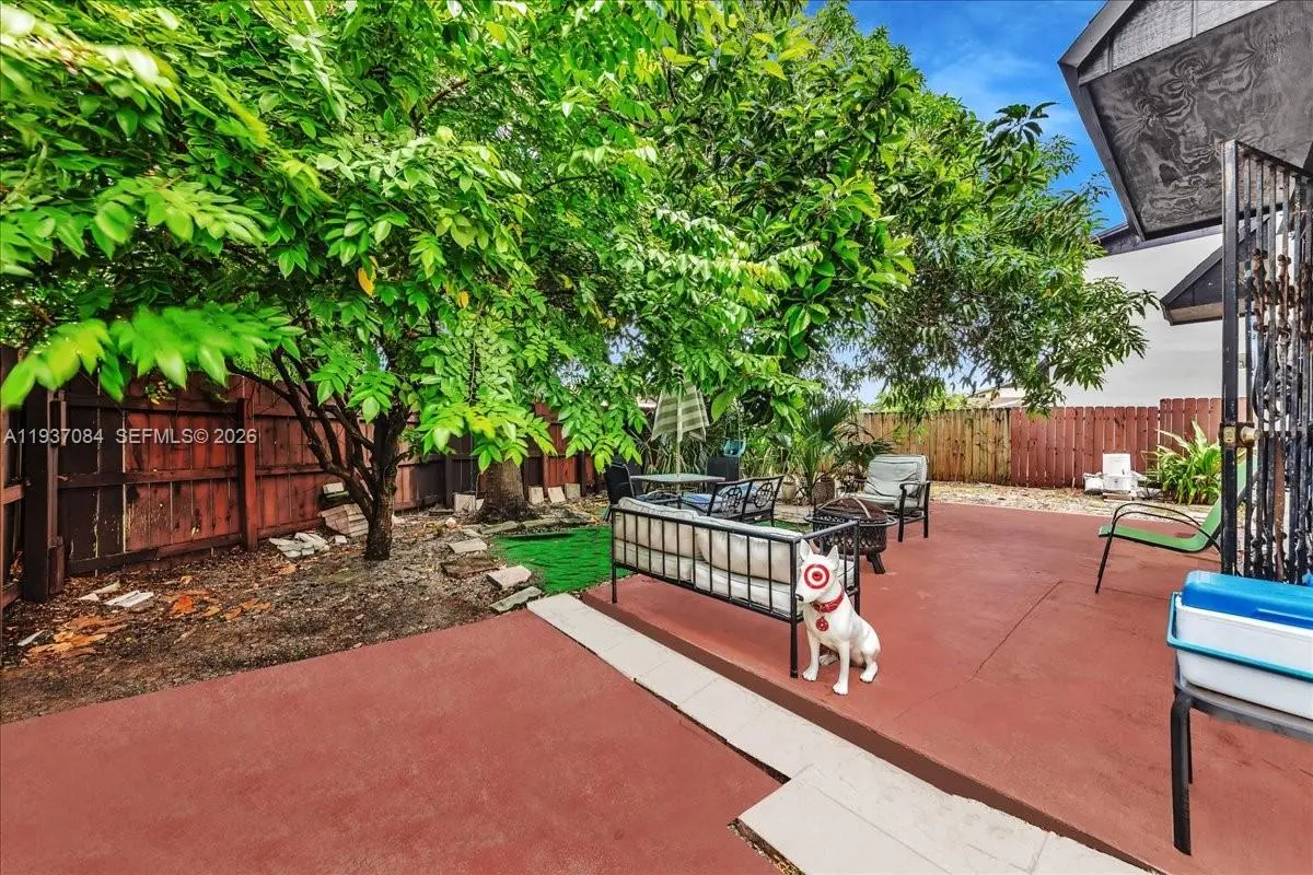 Spacious and well-located 4-bedroom, 2-bath home offering strong appeal for both end-users and investors alike. The property features a bright, open living area with neutral finishes, smooth ceilings, and large windows that enhance natural light throughout. The functional floor plan includes generously sized bedrooms, providing flexibility for family living, multi-generational use, or rental configurations. Situated on a corner lot, the home offers a large, private backyard with mature trees, a wooden privacy fence, and ample space for outdoor living, entertaining, or future enhancements. A covered carport adds everyday convenience. Located just steps from Miami Lakes and close to shopping, dining, schools, parks, and major expressways, this property delivers excellent accessibility and long-term value. With its desirable location, lot size, and versatile layout, this home presents a solid opportunity for investors seeking strong rental demand or families looking to settle in a well-connected neighborhood.