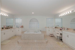 Welcome to this beautifully renovated and elegant, spacious residence offering 6 bedrooms and 4 bathrooms, perfectly situated on an expansive 17,727 sq ft lot. Thoughtfully updated throughout, this home combines modern luxury with comfort and functionality. Enjoy peace of mind with a new roof and new A/C system, along with a brand-new modern kitchen featuring sleek cabinetry, stainless steel appliances, and refined finishes—perfect for both everyday living and entertaining. The home showcases new modern flooring, fully remodeled bathrooms, and has been freshly painted inside, complemented by new modern blinds throughout. The master bedroom features direct access to a private terrace, offering the perfect setting to enjoy stunning sunset views. Additional highlights include a 3-car garage, accordion shutters throughout, and generous indoor and outdoor living spaces ideal for families of all sizes. Located in a well-established community offering excellent amenities and a clubhouse. HOA includes cable, internet, and alarm services. Situated within an area known for top-rated “A” schools. A true turnkey opportunity, schedule your private showing today.