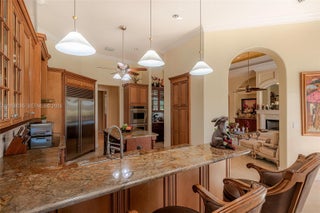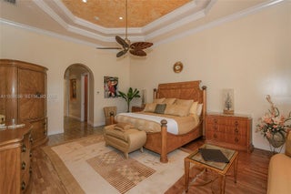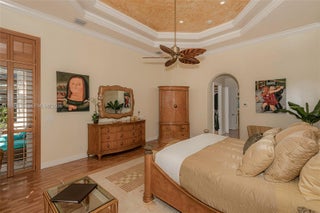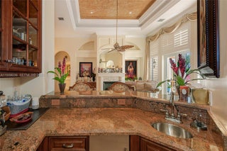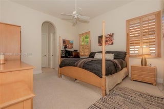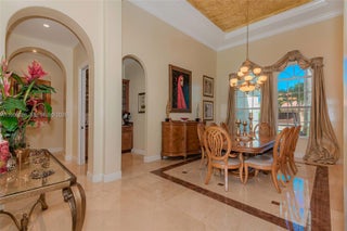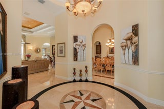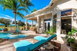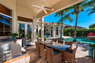 Your dream comes true in this stunning, luxurious one-story home located in the exclusive Enclave of the Grand Palms Golf Community. This sought-after Royale Model features a new roof (2024) and showcases elegance throughout with Navona marble floors, soaring ceilings with illuminated coffered accents, crown molding, and recessed lighting. Impact glass windows are complemented by custom plantation shutters. The spacious primary suite offers his-and-her walk-in closets. A fifth bedroom has been converted into a private theater room. Enjoy outdoor living at its finest with an oversized free form heated saltwater pool, covered patio, and outdoor kitchen, all overlooking breathtaking golf course views. FURNITURE NEGOTIABLE
