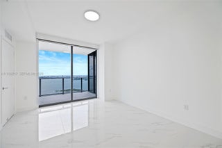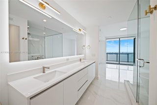 Luxury condo on the 45th floor of Aria Reserve with breathtaking panoramic views of Biscayne Bay! This never lived-in 1 Bedroom + Den, 2-bath residence features elegant modern design, expansive living areas, and floor-to ceiling windows that showcase stunning city and bay vistas. The unit is upgraded with glass shower enclosures, LED-lit mirrors in all bathrooms, and designer curtains in the primary bedroom and living space. Located in a premier waterfront tower, Aria Reserve offers unmatched resort-style amenities: private sports marina, spa, tennis, paddleball, squash and basketball courts, mini golf, a dog park, and two pools with water views—including a semi Olympic pool. Experience elevated living in Miami’s most iconic high-rise.