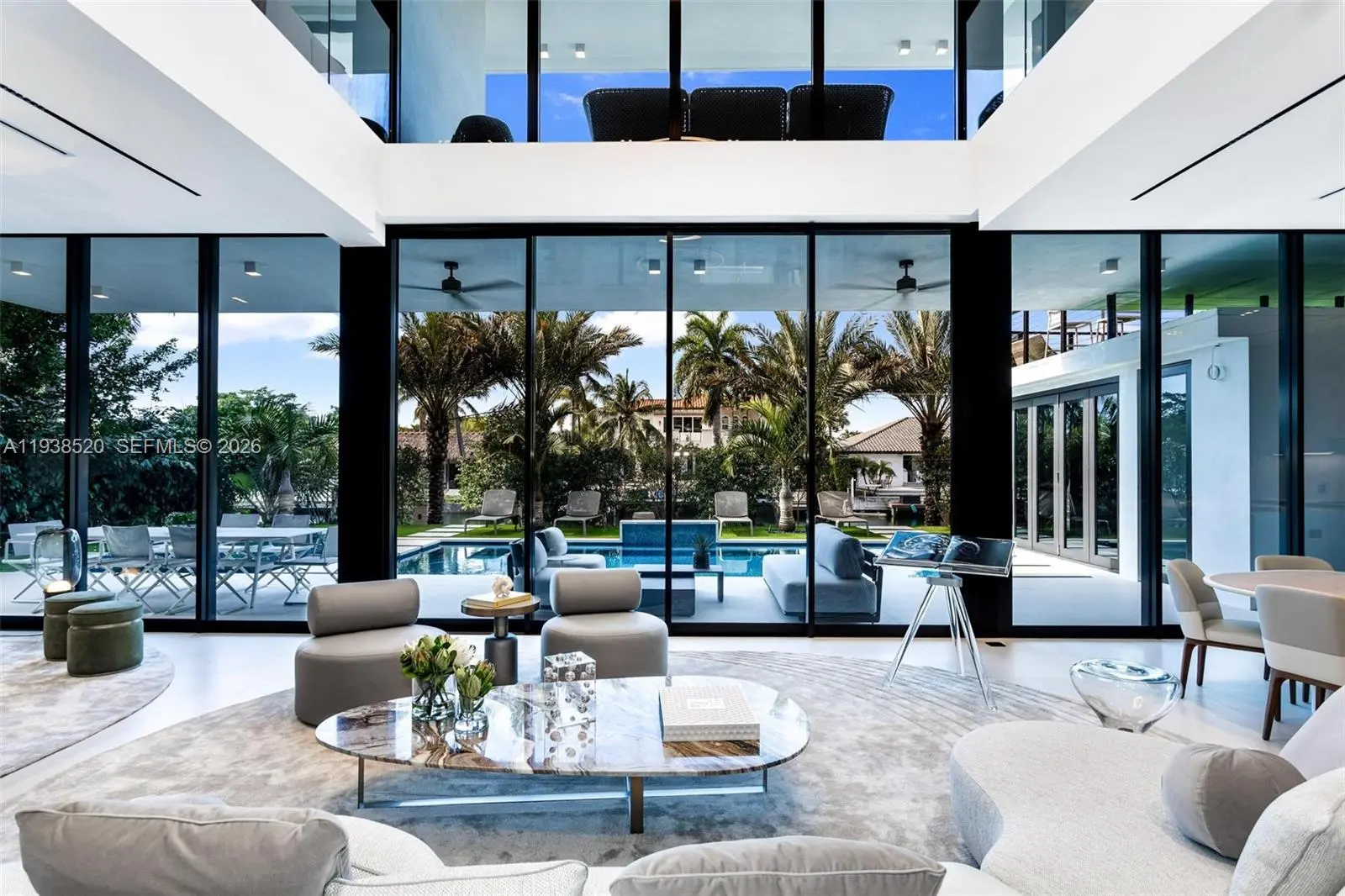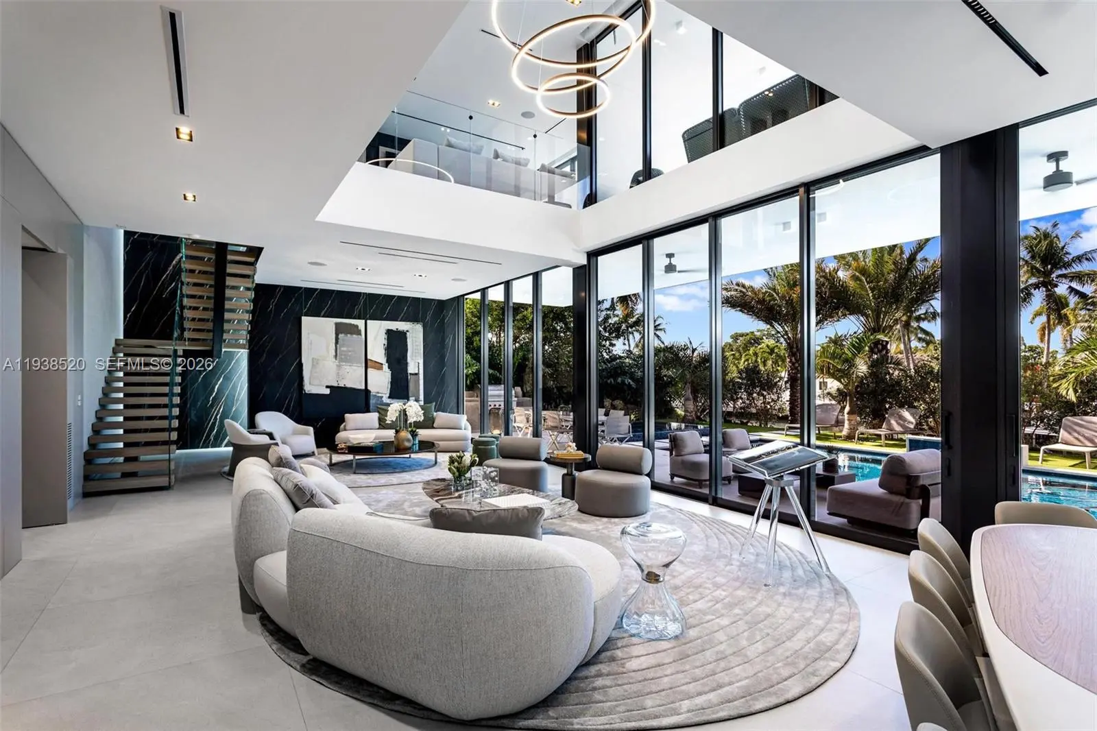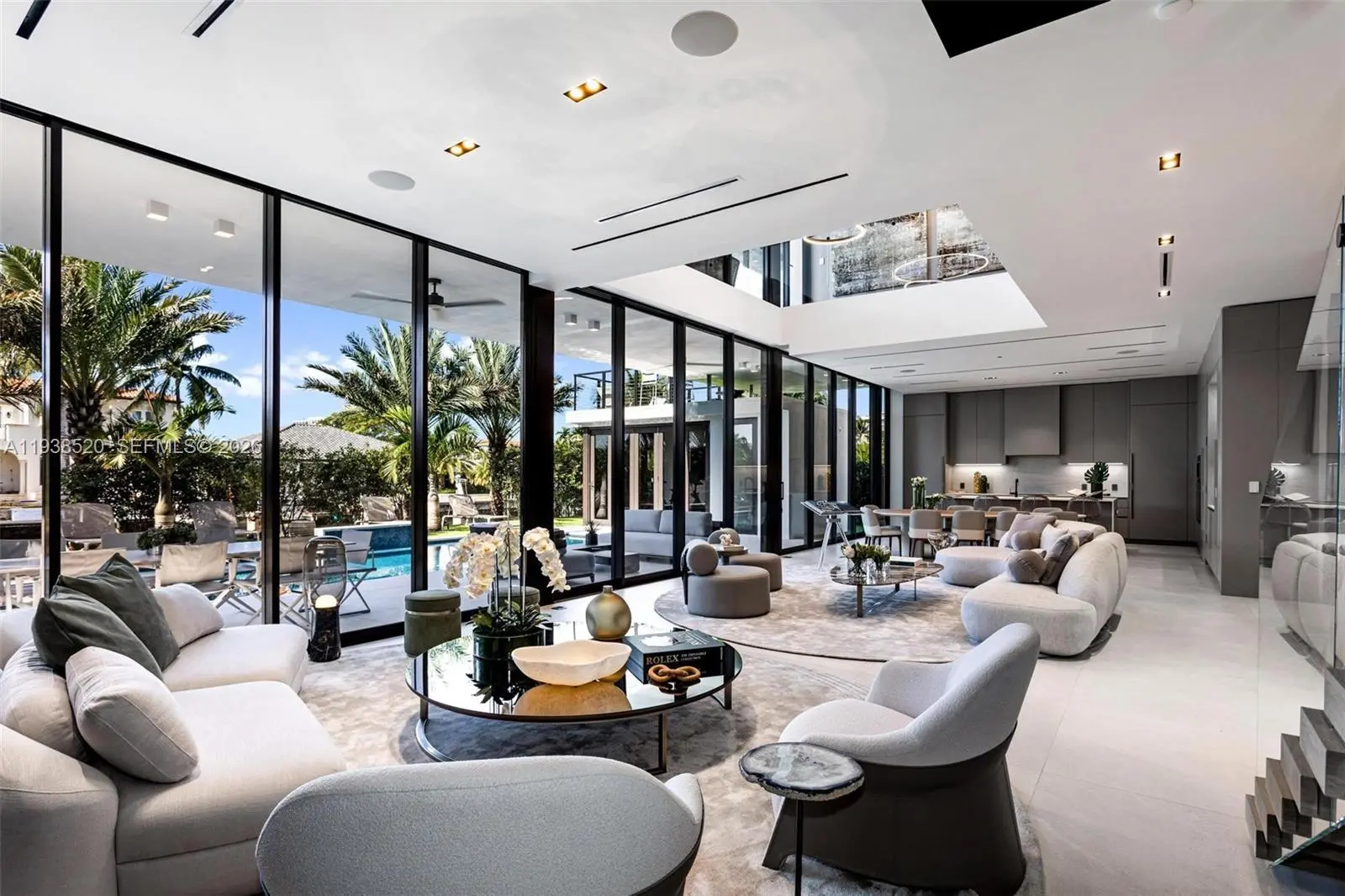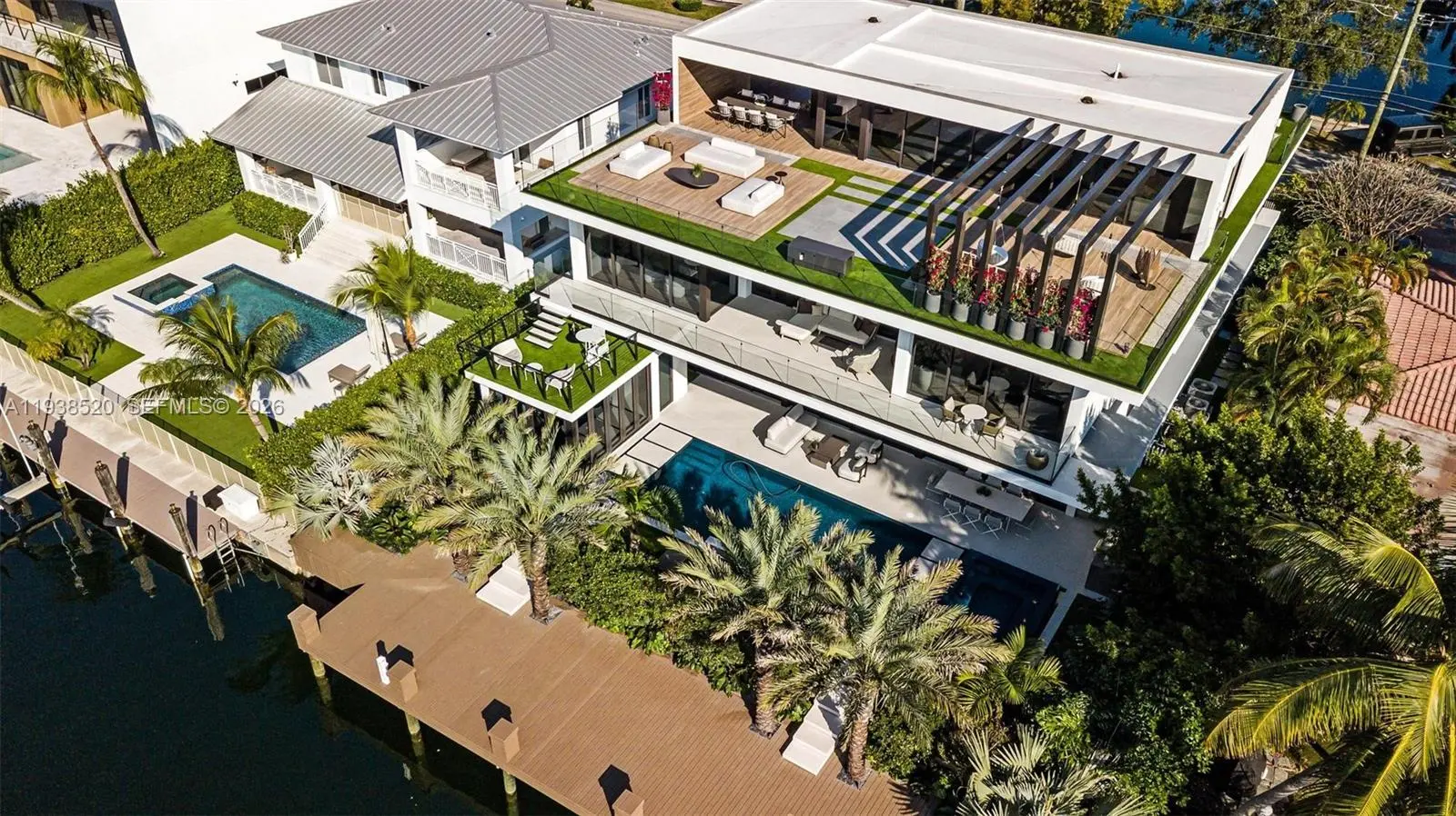 This expansive waterfront residence is located within the gated community of Keystone and offers approximately 6,700 square feet under air and 12,800 square feet total. Featuring 75 feet of direct water frontage with private dock access, the home is designed for both refined living and exceptional entertaining. Highlights include a dramatic double height living room with soaring ceilings, an impressive waterfront lounge terrace with sweeping views, a private putting green, a state of the art private gym, an entertaining game room, an elevator, and a dedicated home office. The residence includes seven luxurious bedrooms and seven full plus one half exquisitely appointed bathrooms. Italian millwork by Mia Cucina and furniture by Artefacto throughout complete this exceptional offering.