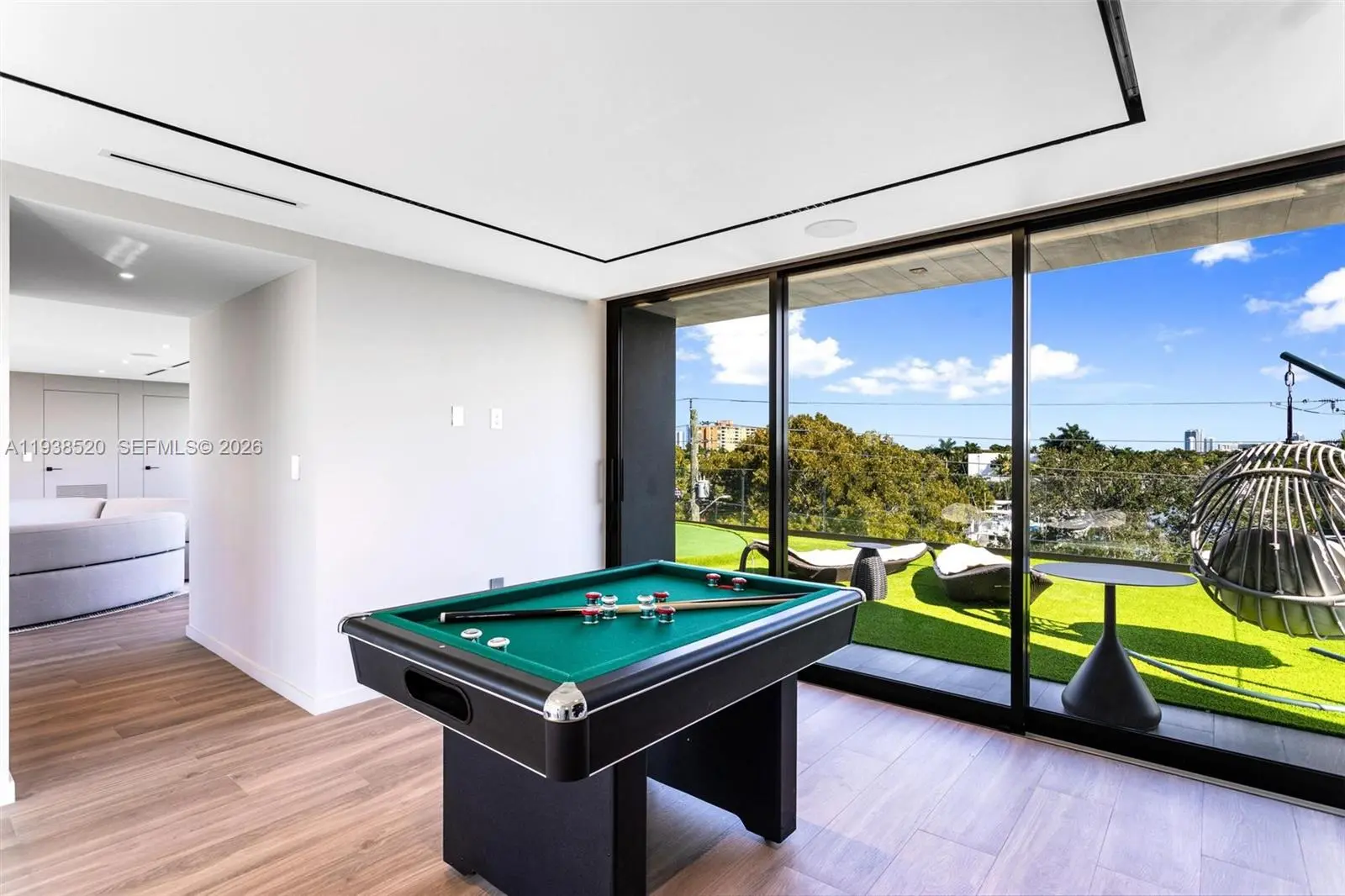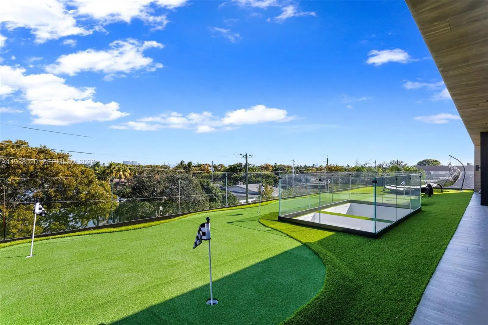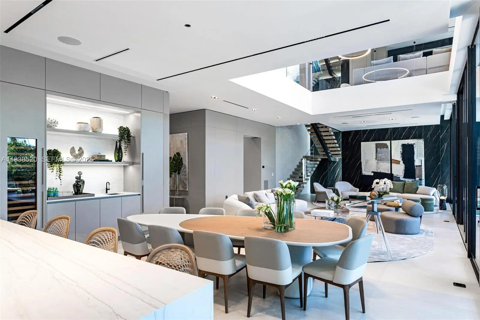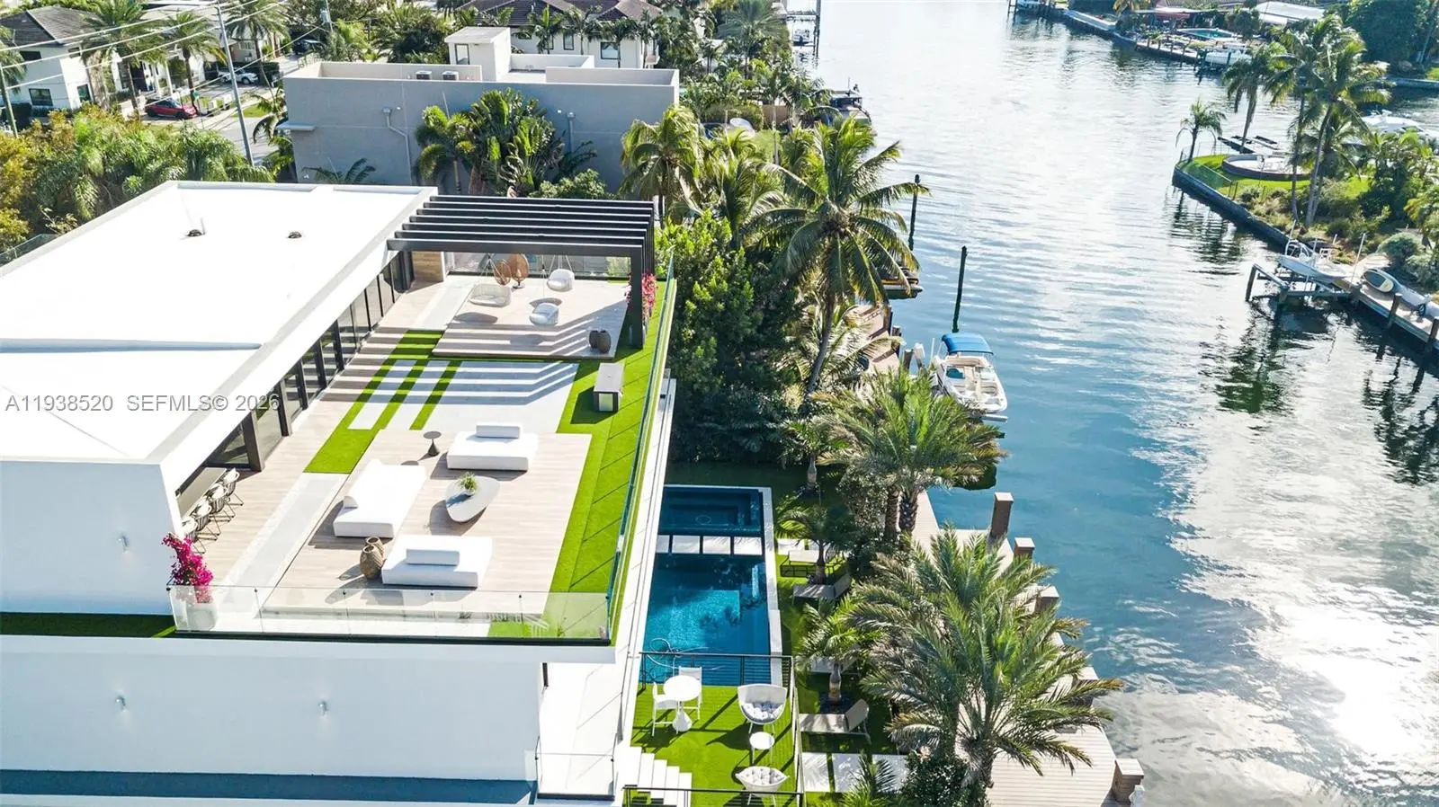 This expansive waterfront residence is located within the gated community of Keystone and offers approximately 6,700 square feet under air and 12,800 square feet total. Featuring 75 feet of direct water frontage with private dock access, the home is designed for both refined living and exceptional entertaining. Highlights include a dramatic double height living room with soaring ceilings, an impressive waterfront lounge terrace with sweeping views, a private putting green, a state of the art private gym, an entertaining game room, an elevator, and a dedicated home office. The residence includes seven luxurious bedrooms and seven full plus one half exquisitely appointed bathrooms. Italian millwork by Mia Cucina and furniture by Artefacto throughout complete this exceptional offering.