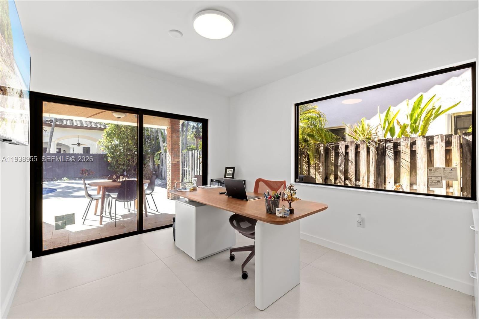 Welcome to Royal Oaks Community, a sought after community offering grade A schools for kids and a peaceful neighborhood with oak tree lines and a real family feel. With an adjusted area of 2,316 sq. ft this home offers an ultra-modern design with large format 48x48 inch porcelain tiles, a complete custom kitchen with a hidden coffee bar, all new Bosch appliances with gas cooktop for cooking enthusiasts, all new LED lights throughout the house, hurricane impact windows and doors, a large 2-car garage, expansive closet space in all bedrooms, a clean view of the back yard, tankless water heater, renewed saltwater pool with a new pool motor and Travertine pavers. The bathrooms all have smart electric bidet/toilet for your convenience. With an open concept design, this home allows your family to gather in the TV room, while cooking and having a meal in the same ambience. It offers a dedicated office with bright views of the backyard and the pool for those looking to work or study from home. The slated panels in the kitchen and dining room together with the large picture windows offer a cozy and modern look from inside and outside of the house. The master bedroom offers a beautiful wooden paneled wall hiding the master bathroom and walk-in-closet behind it making it a very clean design for relaxed living. No expenses were spared in this beautiful home. Come take a look for yourself. Easy to show.
