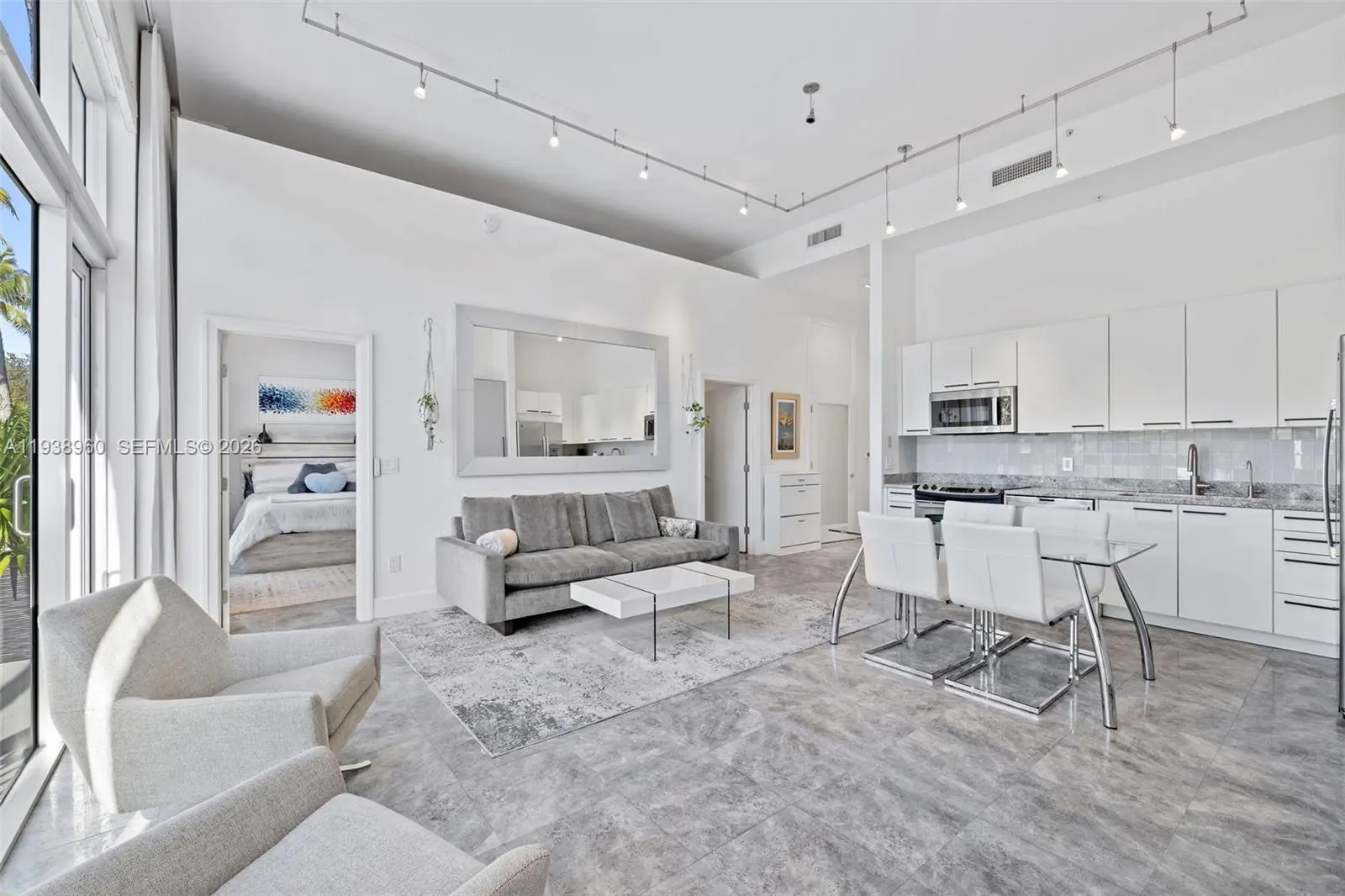 Available Furnished or Unfurnished. Golf Course and Sunset Views. Villa residence at The Meridian Lofts with a flexible 2-bedroom plus den/3rd bedroom layout. Best of both worlds: The feel of living in your own small "house" with private garden with all the condo amenities and services. The open living and dining area feels spacious and bright with high ceilings (13 feet!) and large windows, making it easy to live and entertain comfortably. Finishes are clean and modern, with sleek cabinetry, stone countertops, updated bathrooms, and neutral flooring throughout. The unit includes a full-size washer and dryer, two assigned parking spaces, and convenient street-level access. Enjoy outdoor yard space directly across from the Miami Beach Golf Course. Centrally located near Lincoln Road, grocery stores, Bayshore Park, Sunsets Harbour, and the Beach. Quiet, well-managed building with front desk staff, rooftop pool and spa, and fitness center. Perfect for dog owners! Or anyone wanting easy In & Out access without lobbies and elevators or long hallways etc.