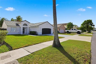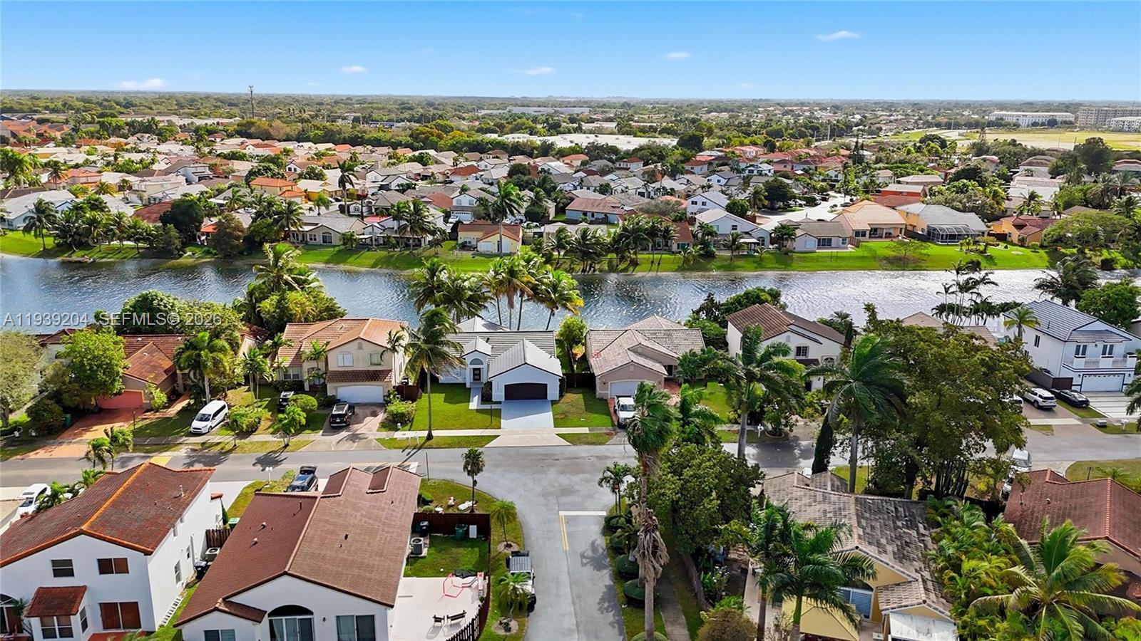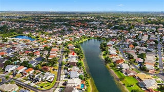 New Roof 2025! Stunning 3-bedroom, 2-bath lakefront home with 2-car garage and spacious fenced backyard. Enjoy serene lake views from the large-tiled patio with new awning and fully sprinklered lawn. Open-concept living features porcelain tile, fresh paint, ceiling fans, and a modern kitchen with white cabinetry, Calacatta quartz, stainless steel appliances, and center island. Private primary suite with walk-in closet, double vanity, and walk-in shower. Upgrades include impact front door and accordion shutters. Move-in ready and centrally located, this home perfectly blends modern style, functionality, and lakeside tranquility.