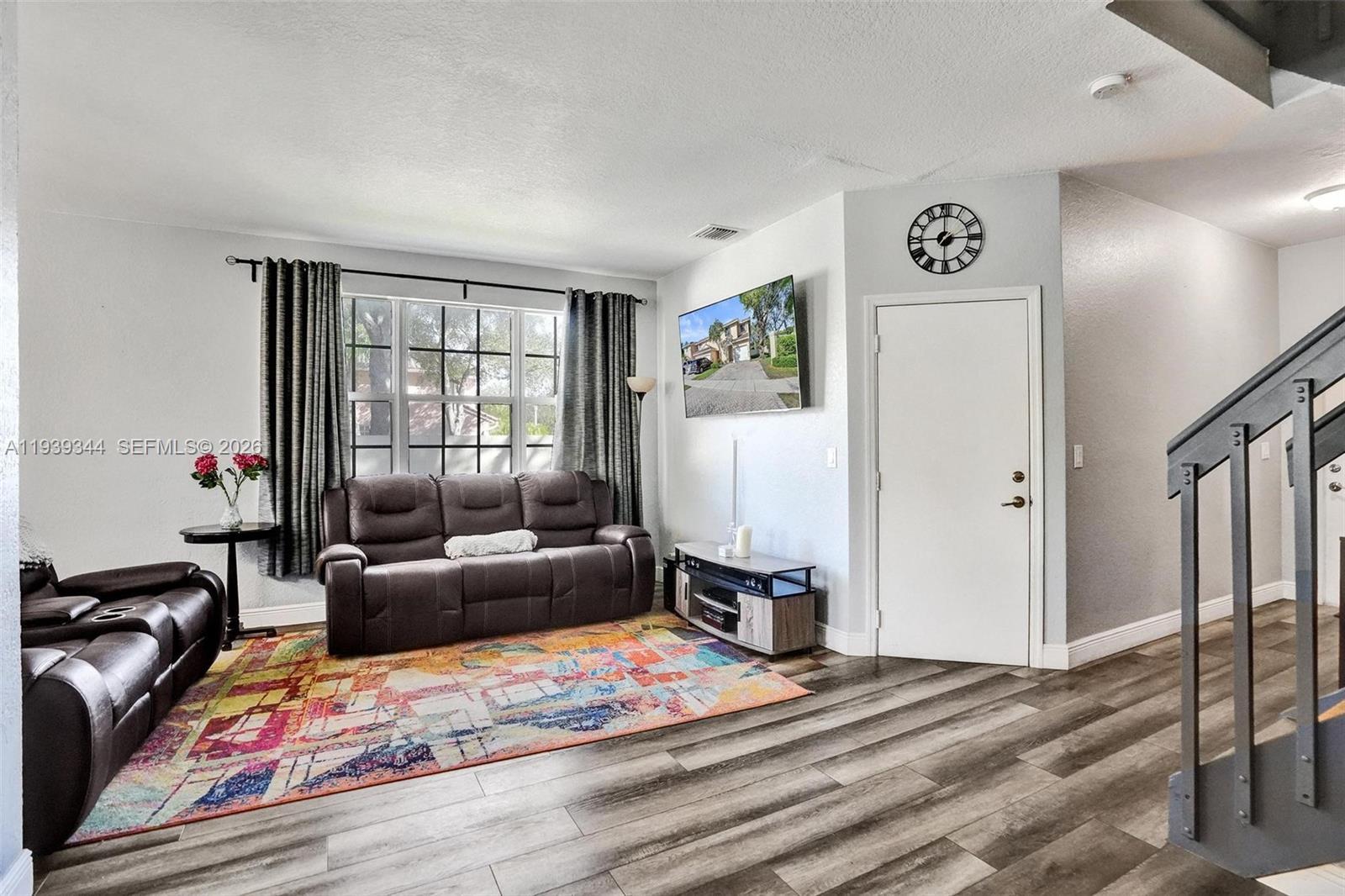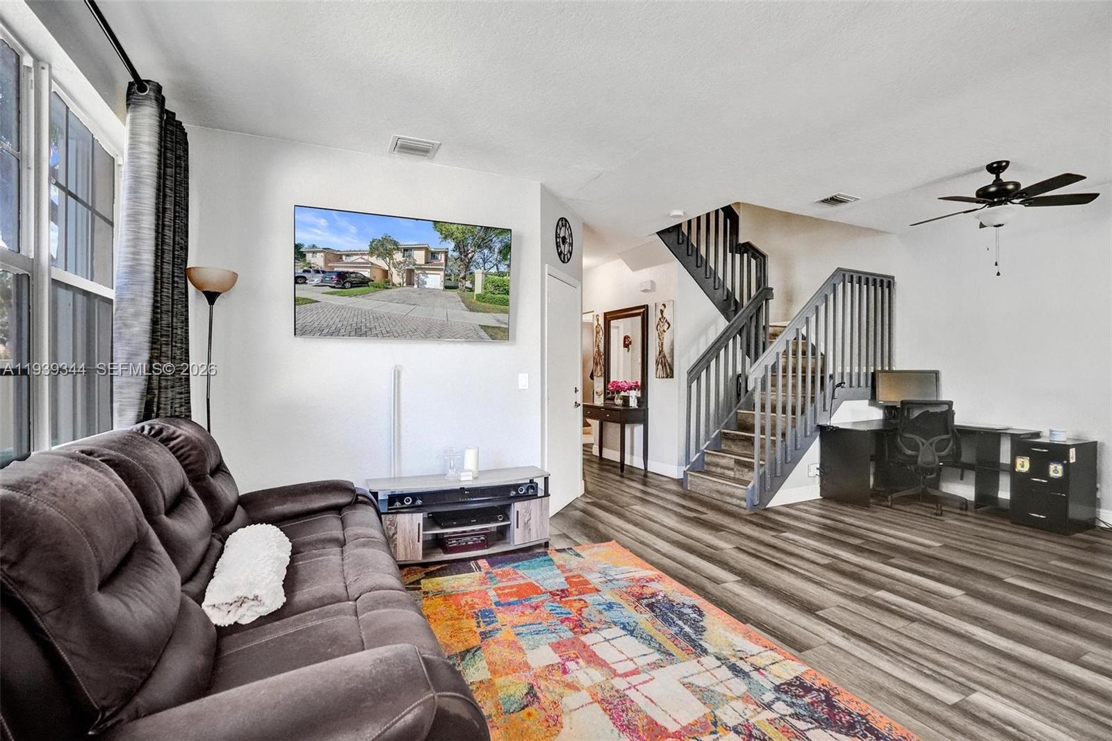 Gorgeous and bright corner-lot townhouse offering 4 bedrooms, 2.5 bathrooms, a family room, and a 1-car garage with driveway parking for up to four additional vehicles. Recently updated with a new roof (2025), new HVAC system (2025) and new stove (2025) renovated upstairs bathrooms, and wood flooring throughout both level. The spacious primary suite features vaulted ceilings, a walk-in closet. Enjoy a large private side yard enclosed by a 6-foot wall—perfect for relaxing or entertaining. Located in a quiet, gated community with manicured landscaping, two lakes, two pools, and a children’s playground—resort-style living at its best. Surrounded by two new parks and just two blocks from an upgraded AMC Theater, with Sawgrass Mall nearby. Low HOA of $258/month includes ADT alarm monitoring.