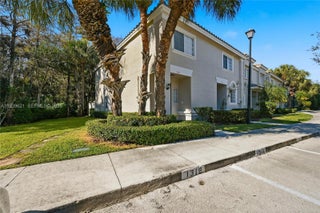 Well-maintained 3-bedroom, 2.5-bath townhome located in a gated community, situated on a corner lot with a fenced-in backyard offering added privacy. This home features shutters, a rear storage room, and assigned parking spaces. Recently updated with a 2023 barrel tile roof, fresh interior paint, and waterproof luxury vinyl flooring throughout the main living areas. The kitchen offers white cabinetry, Calacatta quartz countertops throughout, and stainless steel appliances, providing a bright and modern feel. The primary suite includes a double sink vanity and a walk-in shower. Seller will pay the special assessment in full at closing, adding additional value and peace of mind. Centrally located and move-in ready, this townhome combines modern upgrades, functionality, and a desirable community setting. Two pets allow max 50 pounds.