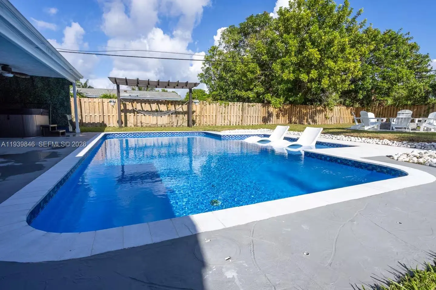 Welcome to this spacious 5-bedroom, 3.5-bathroom single family home in a desirable NO HOA community in Delray Beach. This residence features a bright open layout with recent updates throughout. A brand new gourmet kitchen that flows into the multiple living and dining areas, making it ideal for both relaxing and entertaining. The primary suite and generously sized guest rooms provide plenty of flexibility for large households, guests, or a home office. Step outside to a huge backyard oasis with an in-ground pool, fire pit, kids playground and a cabana bath. This outdoor space is perfect for enjoying the Florida lifestyle year-round. Conveniently located 8 minutes from Atlantic Avenue near shopping, dining, beaches and major roadways. Investor friendly community with no rental restrictions. Furniture and jacuzzi negotiable. Perfect home for investors and short-term rentals.