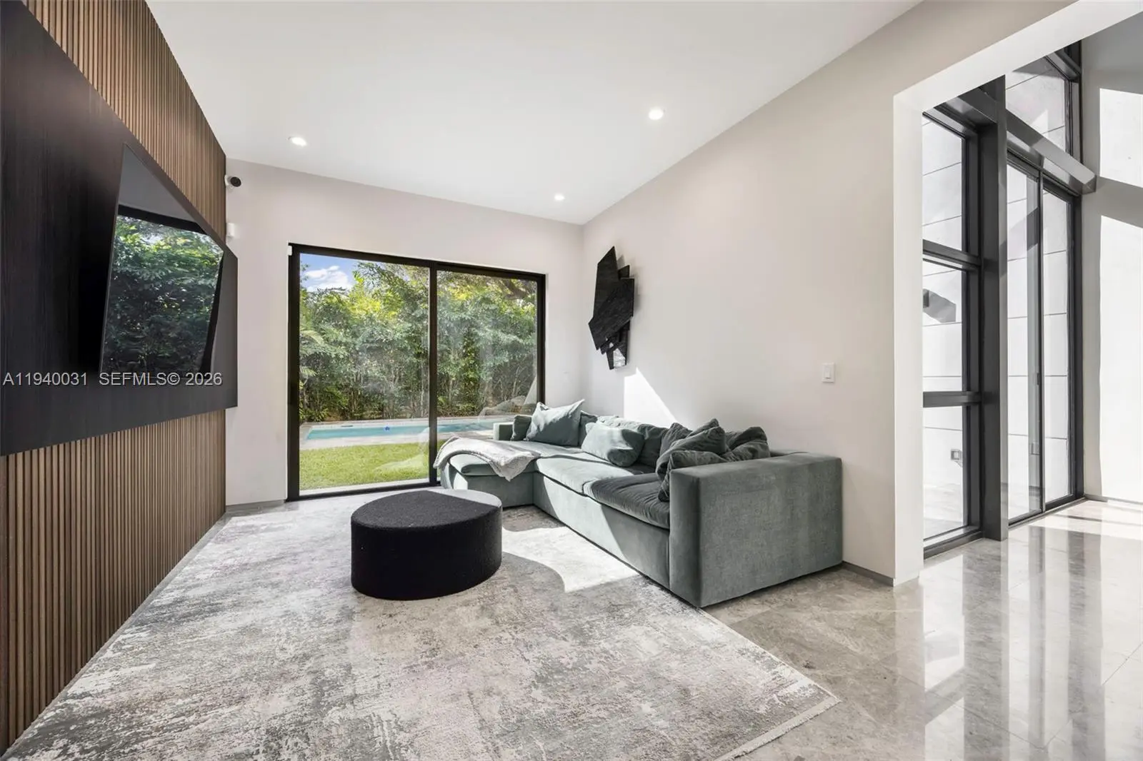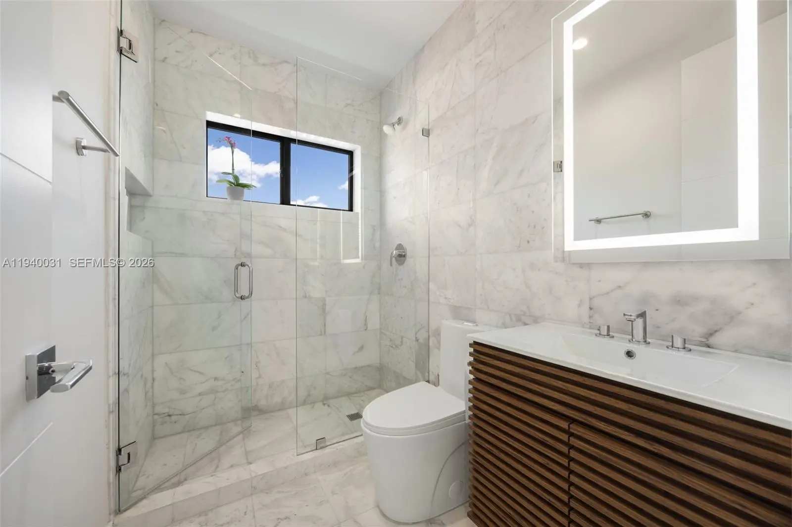 Custom-built 2023 luxury residence features striking modern architecture & refined high-end finishes throughout. An open-concept floor plan seamlessly connects the living, dining & kitchen, highlighted by stunning granite floors, soaring ceilings & expansive impact windows that fill the home with natural light. 4 bedrooms + office. 5 elegant marble bathrooms. The Italian designer kitchen is equipped with Bosch appliances, a large quartz island & ample storage, making it ideal for both everyday living & entertaining. Outside, a private lushly landscaped backyard offers a covered patio & pool- perfect for relaxing or hosting guests. The generous primary suite features a private balcony overlooking the backyard, with multiple walk-in closets & a luxurious spa-like marble bath. A spacious junior primary suite & office are located on the first floor, with the primary suite & two additional ensuite bedrooms upstairs. Additional features include a second-floor laundry room, electric gate, irrigation system & a one-car garage currently set up as a gym. Non-flood zone. City sewer. Enjoy an ideal central location in the heart of Miami, just minutes from Brickell, Coconut Grove & Coral Gables, offering the perfect balance of peaceful living & vibrant city life.