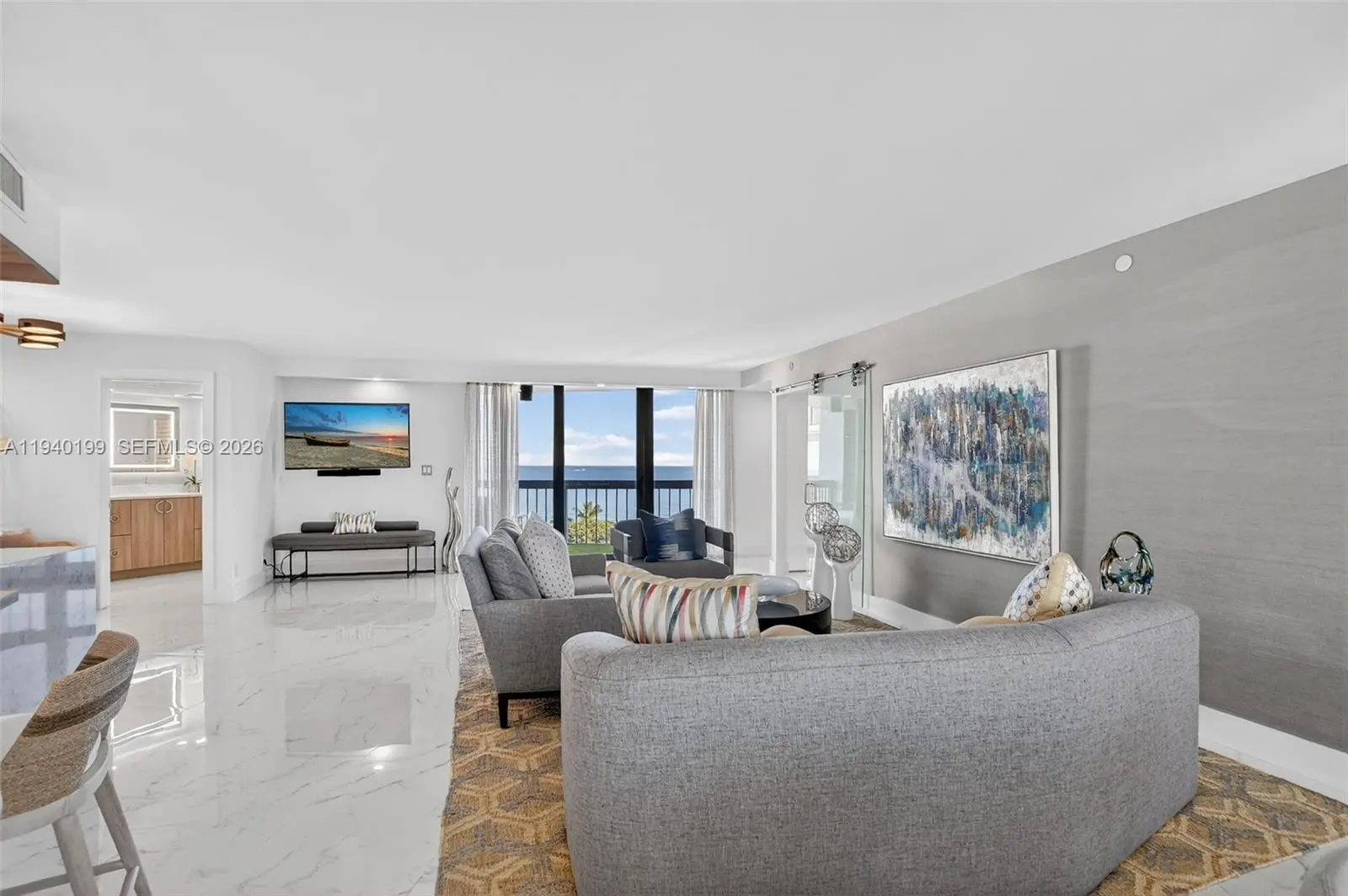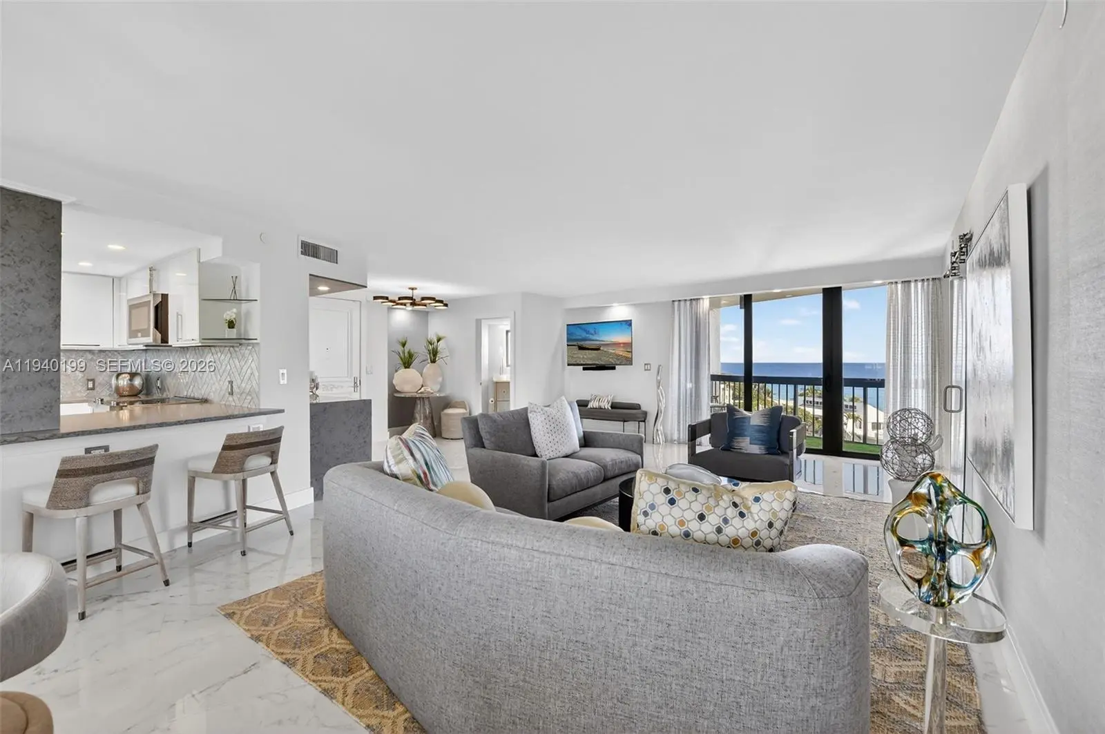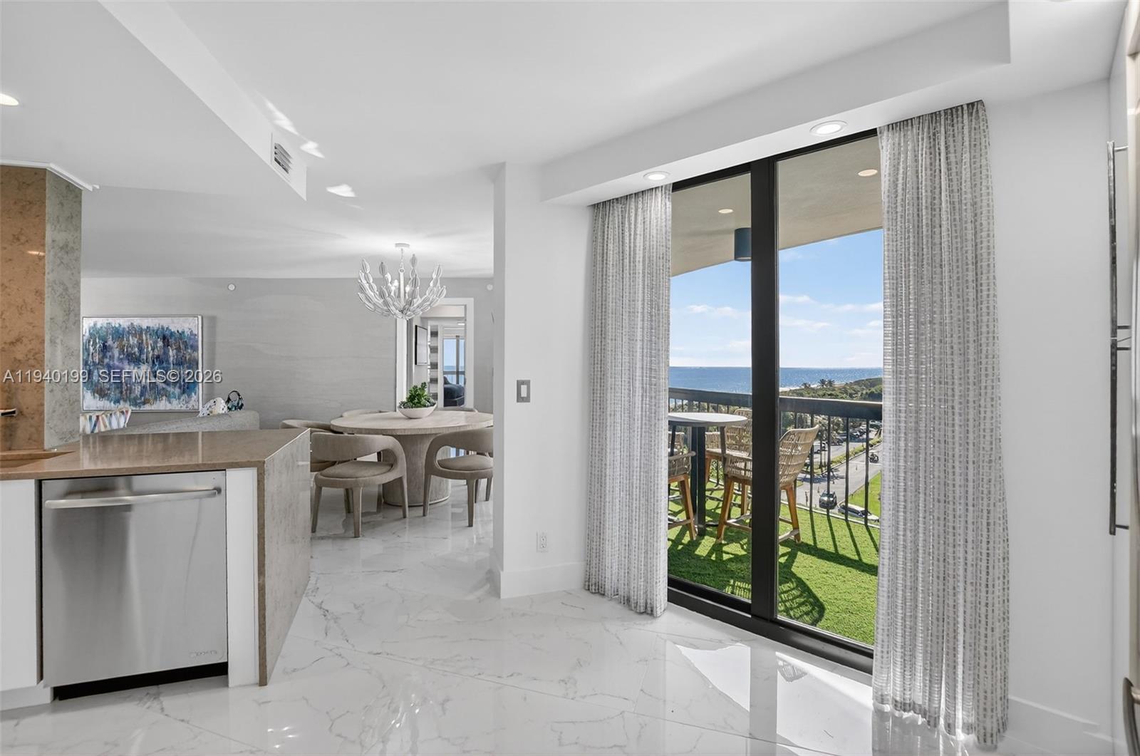 Presenting Residence 8B at 4545 N Ocean Boulevard, the most coveted “B” stack on the 8th floor of Admirals Walk, offering direct ocean views from every room. Completely renovated, this residence features refined designer finishes throughout, including custom lighting, elegant millwork, and high-end fixtures. A spacious eat-in kitchen anchors the home with custom cabinetry and JennAir appliances, elegant stone surfaces, and a bar with wine cooler, perfect for gourmet cooking and entertaining. The thoughtful layout includes two full bathrooms and a powder room, laundry room, storage room inside the unit and a storage cage in the lobby. Two entrances provide flexibility: a main door to the living area and a second door directly to the kitchen. Wake each morning to unobstructed ocean views or step outside to enjoy the sea breeze from one of three private balconies. Additional features include impact-rated glass throughout, two deeded parking spaces, and the privacy of only four residences per floor, creating a quiet, boutique living experience. Admirals Walk is a full-service oceanfront building offering a full-time 24 hours doorman, newly renovated fitness center, club room, southeast-facing pool, tennis courts, pickleball, and private beach access. Ideally located just off Spanish River Boulevard and A1A, this residence delivers the best of Boca Raton’s oceanfront lifestyle—private, serene, effortlessly refined and perfect for full-time living or a luxurious vacation retreat.