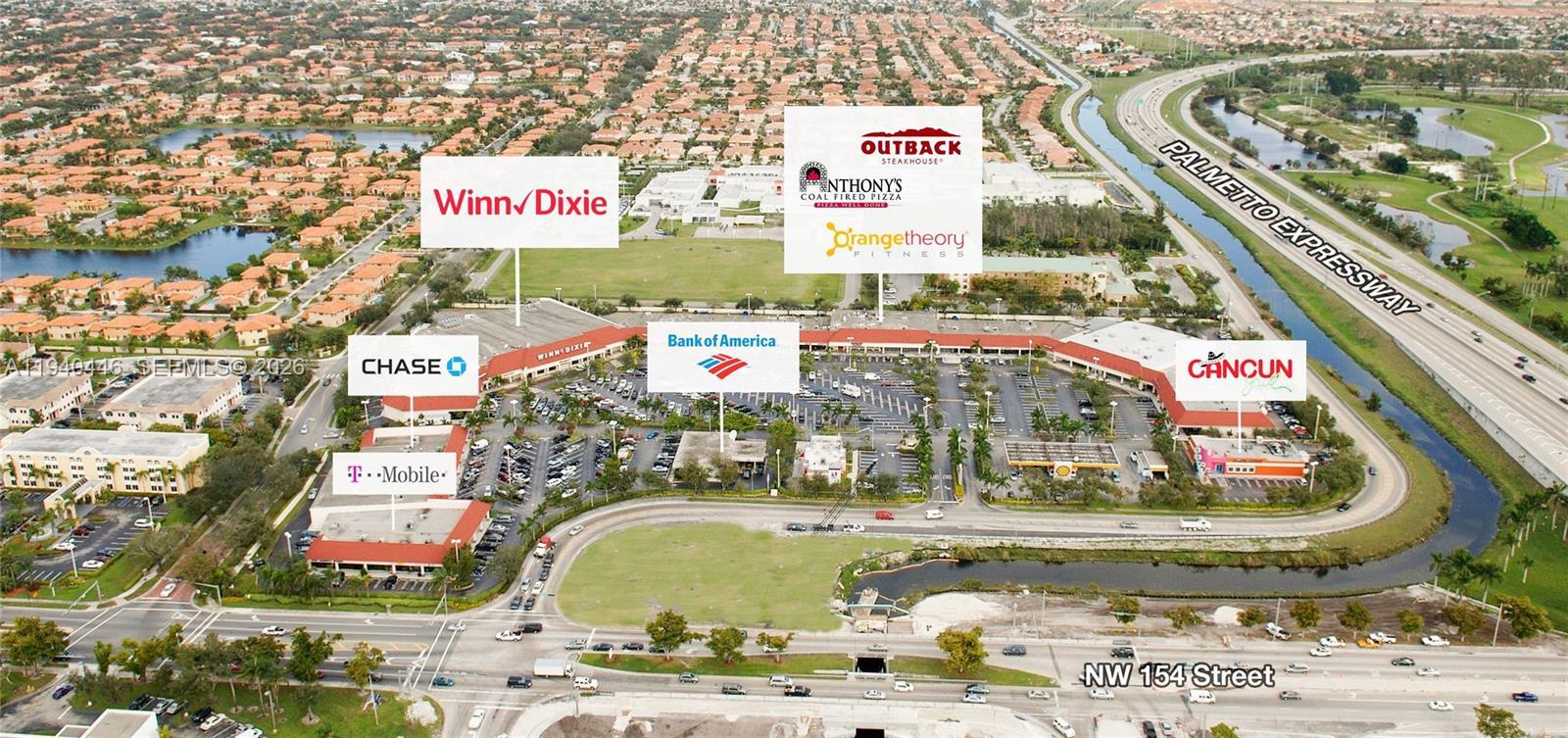 • Largest grocery anchored shopping center in Miami Lakes, Florida • Retail bays available from 1,700 SF - 4,415 SF • Join Winn-Dixie, Outback Steakhouse, Bank of America, Chase Bank, Massage Envy, Uni-K Wax, Supercuts, Anthony’s Coal Fired Pizza, Orange Theory Fitness, T-Mobile, KFC, Jetstream Credit Union, and Subway. • Over one million square feet of office space located within 1 mile • Over 8,900 daytime employees within 1 mile and over 55,000 daytime employees within 3 miles • Traffic Count: Over 23,500 vehicles daily on NW 154th Street and over 143,500 vehicles on Palmetto Expressway (SR-826)