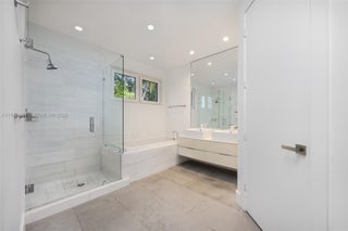 A striking tropical modern retreat on a quiet street in South Grove, this residence offers soaring ceilings, walls of glass, and seamless indoor-outdoor living. Natural light fills the open layout, highlighting serene views of the pool and landscaped gardens. The European-style kitchen features quartz countertops, a central island, and premium appliances. Four spacious bedrooms each offer en-suite baths, while a versatile upstairs den can easily serve as a fifth bedroom. The luxurious primary suite includes a spa-inspired bath and a private balcony overlooking lush treetops. Set on a deep, street-to-street lot, the home’s ultra-private backyard is ideal for entertaining and relaxation. Enjoy proximity to top schools, including Ransom Everglades, Carrollton, St. Stephen’s, and more, plus walkability to the Grove village, Bayfront parks, and marinas. This is elevated living in one of Miami’s most sought-after neighborhoods.