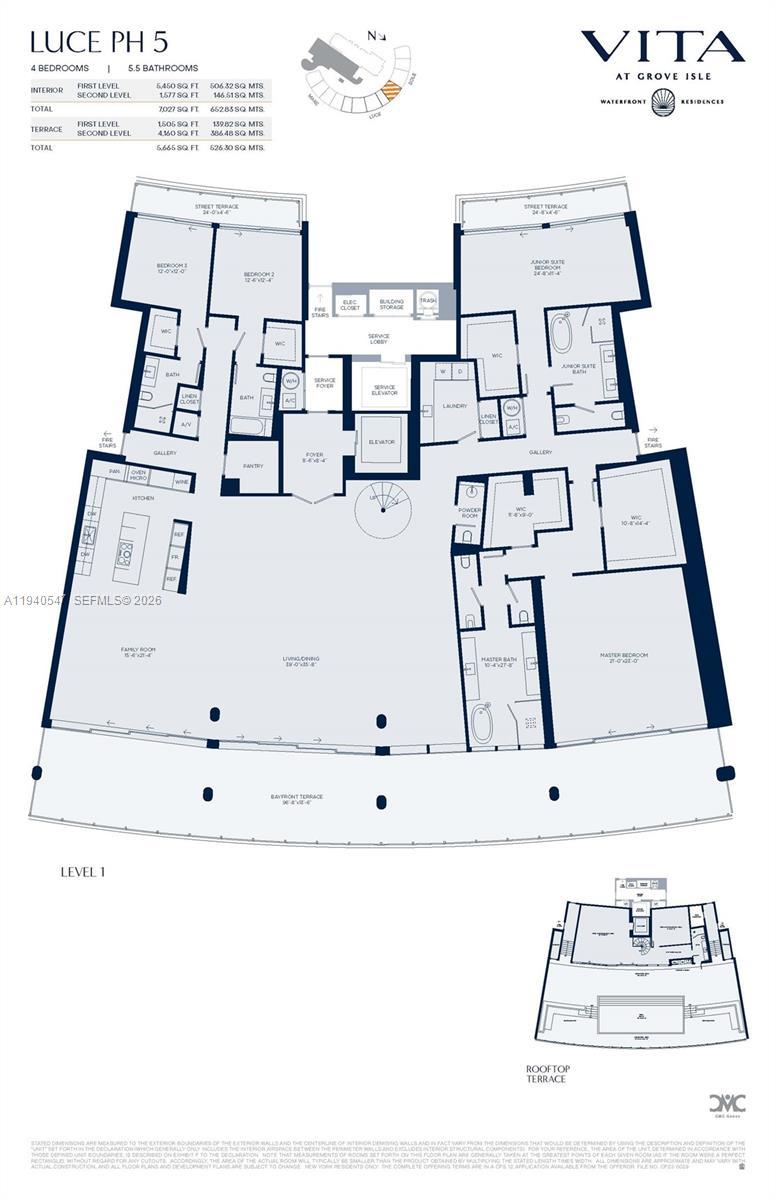 DEVELOPER UNIT- Developer Ugo Colombo of CMC Group elevates luxury and quality construction to new heights at this exclusive waterfront sanctuary, featuring just 65 condominium residences on a private island. This 2-story penthouse boasts smart home automation, floor to ceiling windows, and soaring 11-foot ceilings that frame breathtaking panoramic views of Biscayne Bay. The expansive rooftop terrace (4,160 SF) includes a private 40' x 17' pool, a summer kitchen and a large, air-conditioned entertainment space. Private elevator for direct access to your residence, along with a service elevator only shared by 10 units. PHLO5 showcases high end finishes, such as Molteni kitchens, Miele appliances, a book-matched marble primary bath, frameless Barausse doors and more.
