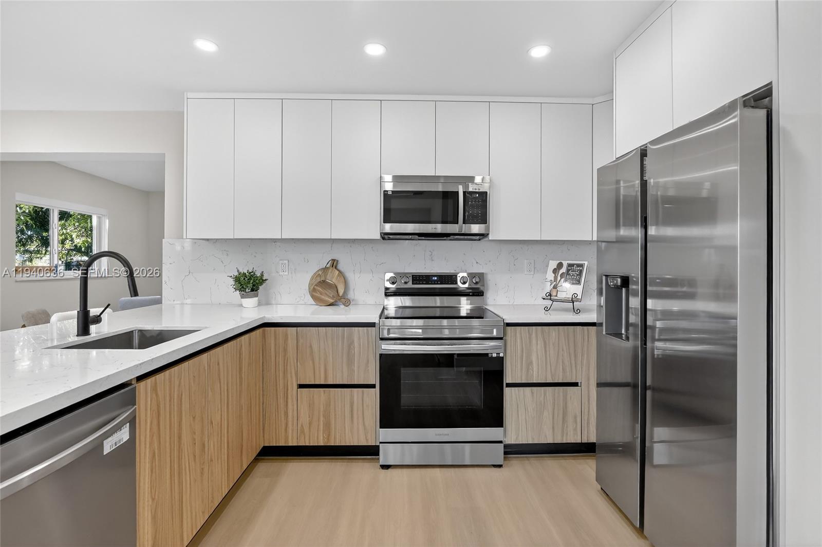 Imagine waking up in this stunning Miami Gardens home, just minutes from the iconic Hard Rock Stadium. Natural light pours through multiple windows, filling every corner with warmth and brilliance. With 3 bedrooms and 2 bathrooms, the home offers luminous, open spaces where daily life feels effortless and special. The heart of the home is its open-concept kitchen—a true centerpiece—featuring sleek stainless steel appliances, white quartz countertops, and a spacious layout perfect for preparing meals, entertaining friends, or enjoying quiet moments together. It flows seamlessly into the living and dining areas, creating a bright, inviting environment where every gathering feels memorable. The bathrooms are fully tiled, on both floors and walls, and showcase modern fixtures and recessed lighting, combining elegance and practicality. Throughout the rest of the home, durable, water-resistant vinyl flooring with a rich wood-look finish adds warmth and sophistication. Step outside to a generous backyard with trees and a convenient storage shed. Located near major highways, shopping, and entertainment, this home offers easy access to everything Miami has to offer while remaining a private sanctuary. Every detail, from the abundant natural light to the stylish finishes, makes this home a rare find—a place where you can truly live your dream lifestyle and create memories that last a lifetime.