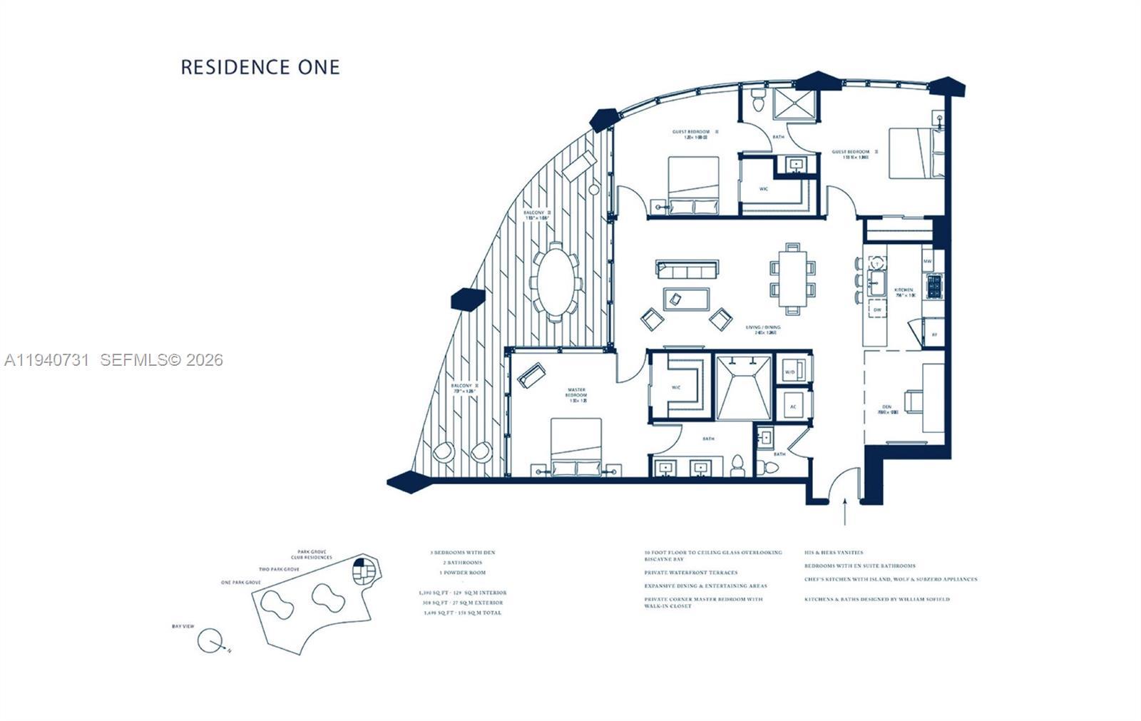 Live in one of Coconut Grove’s most exclusive bayfront developments overlooking Biscayne Bay and the marinas. Fully furnished 3 bedroom, 2.5 bathroom, turnkey residence featuring 12-ft. ceilings, expansive water views, and one of the largest private terraces in the building, ideal for indoor/outdoor living. The kitchen is equipped with Wolf and Sub-Zero appliances, marble countertops, and custom built-ins. Additional features include a reverse osmosis water filtration system, Jolie Water filters in the showers, heated Japanese toilet seats, custom closets in all bedrooms, impeccably clean AC unit with whole-house air purification system and blackout window treatments. The primary suite offers dual vanities and a double shower. One assigned parking space, 24-hour valet and concierge. The Club Residences Tower features its own rooftop pool and access to exceptional amenities including resort-style pools with private cabanas, fitness center, spa, private restaurant, wine cellar/wine lockers, indoor/outdoor yoga spaces, private screening/media room, adult gaming room including billiards and table tennis, library, children's indoor and outdoor play area and lushly landscaped gardens by Enzo Enea grounds with artwork by notable sculptors and artists. Walk to dining, marinas, schools, parks, and all that Coconut Grove has to offer.