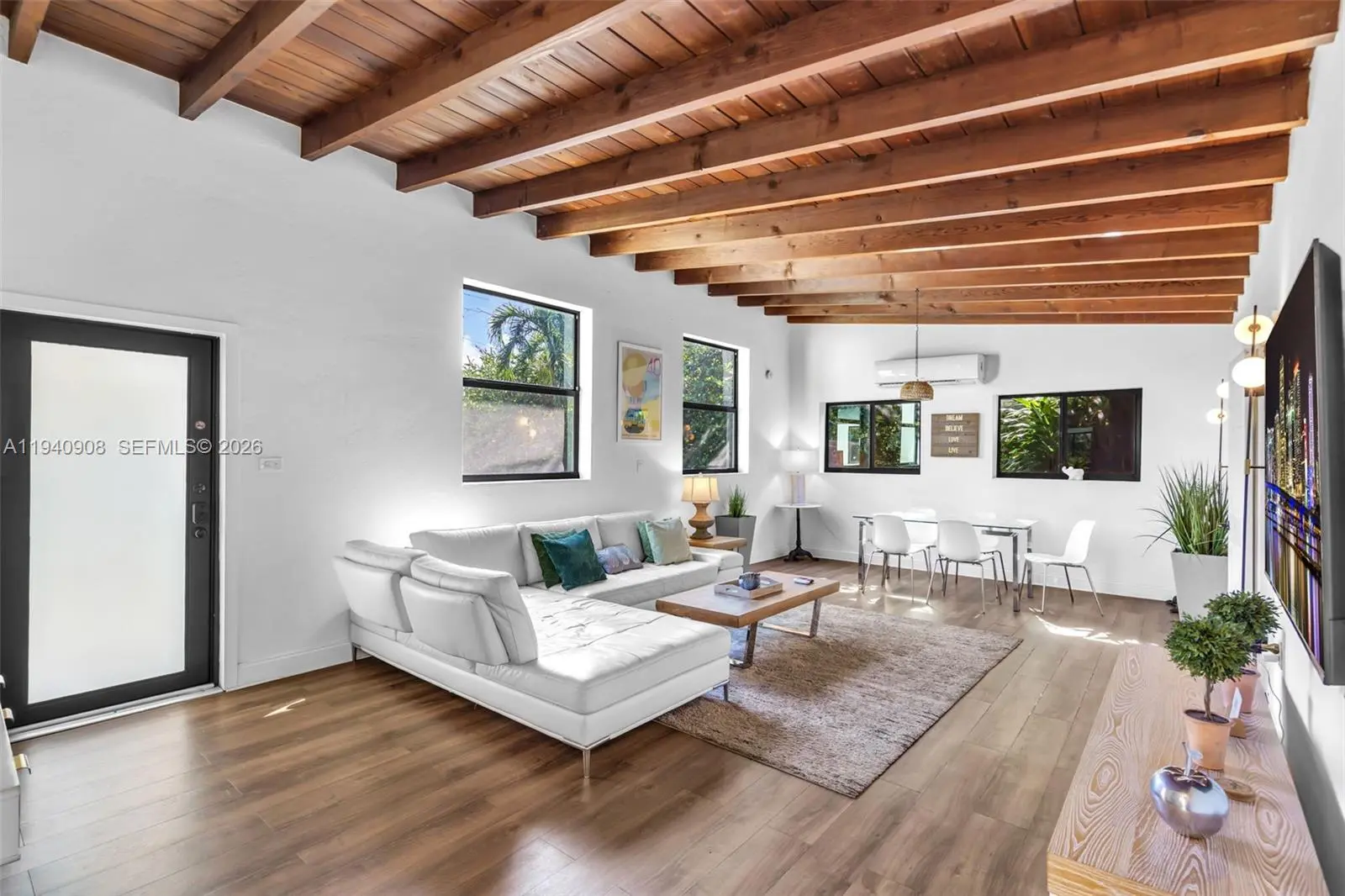 Exceptional mid-century modern home in the heart of Biscayne Park,showcasing dramatic vaulted ceilings,refined architectual lines,& a beautifully curated indoor-outdoor lifestyle.This 3 bd/2ba home features impact doors & windows throughout,bright updated bathrooms,& sun-filled living spaces framed by lush tropical greenery.Expansive grounds offer a private,resort-style setting wth BBQ pavilion,spa,jacuzzi,multiple lounging areas designed for entertaining.Oversized lot room for pool.Fully Airbnb-approved & turnkey.A rare opportunity to own a timeless architectural gem in one of Miami's most coveted neighborhoods.