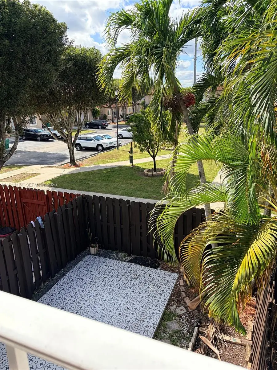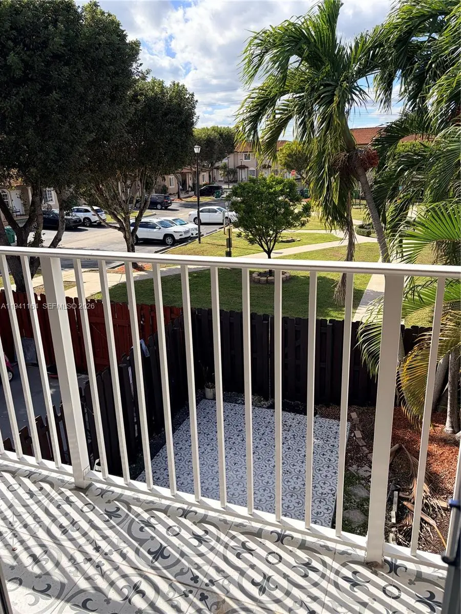 Beautiful 2-bedroom, 2.5-bath townhouse with a private fenced backyard and a second-floor balcony overlooking the backyard and a serene green space with trees and walkways. The primary bedroom features a fully renovated private bathroom with peaceful views of the backyard, which showcases elegant black-and-white decorative tiles. Enjoy privacy with no other house behind and plenty of space for BBQs, gardening, and family gatherings. The kitchen is fully stainless steel with brand-new microwave and dishwasher. Washer, dryer, and water heater are fairly new, and the AC is well-maintained and in perfect condition. The home has bright, open interiors with gorgeous porcelain tile floors. Additional features include two assigned parking spaces in front of the house, plenty of guest parking, a well-managed HOA and the community is pet-friendly. Conveniently located near great schools, parks, many grocery stores, and attractions like the Miami Zoo, with easy access to major highways. A perfect blend of comfort, style, and location!