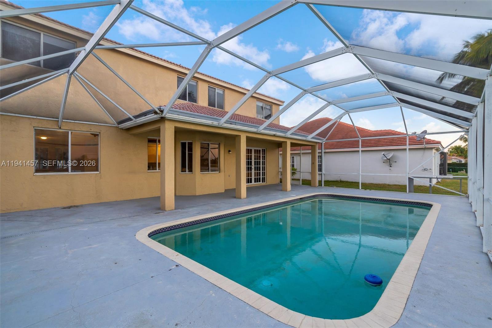 Spectacular lakefront living in Weston. Welcome to 714 Heritage Dr, a beautifully renovated two-story 5-bedroom, 3-bath residence offering 2,860 sq ft of bright, open living space plus a 2-car garage. Enjoy the ultimate Florida lifestyle with a screened-in pool overlooking tranquil lake views, ideal for entertaining or unwinding at the end of the day. Inside, the home shines with thoughtful upgrades: new kitchen and bath cabinetry with soft-close doors, granite countertops, stainless-steel Samsung appliances (including washer/dryer), 24x24 porcelain tile throughout the first floor, new carpeting upstairs, and LED lighting throughout. A sunlit breakfast area with a bay window captures the water views and brings in abundant natural light, while the spacious primary suite provides a comfortable retreat. Located in a sought-after gated community with amenities and access to high-performing Weston area schools (buyer to verify enrollment/assignments). City of Weston Schedule your private showing—this lakefront home is a must-see.