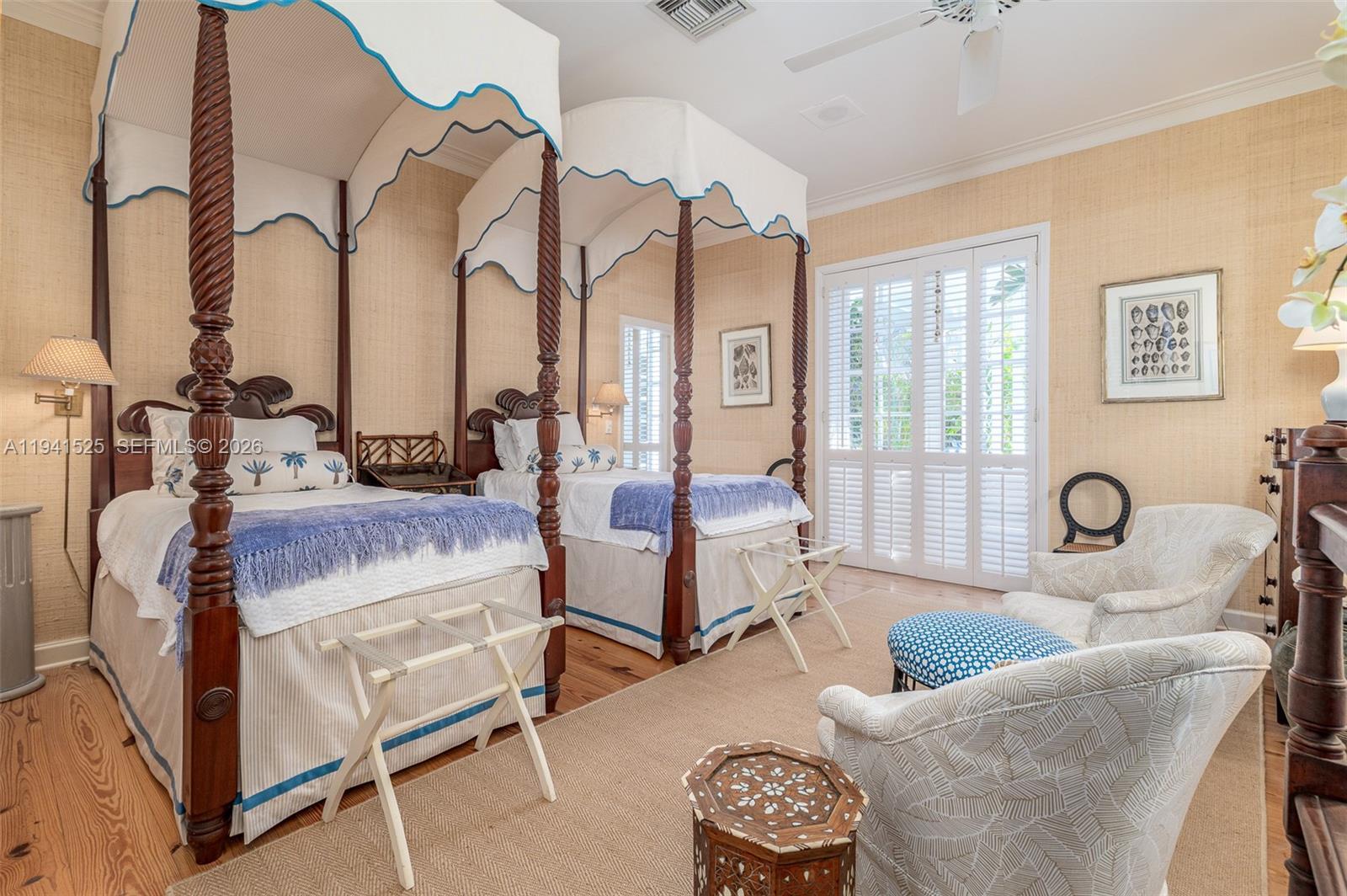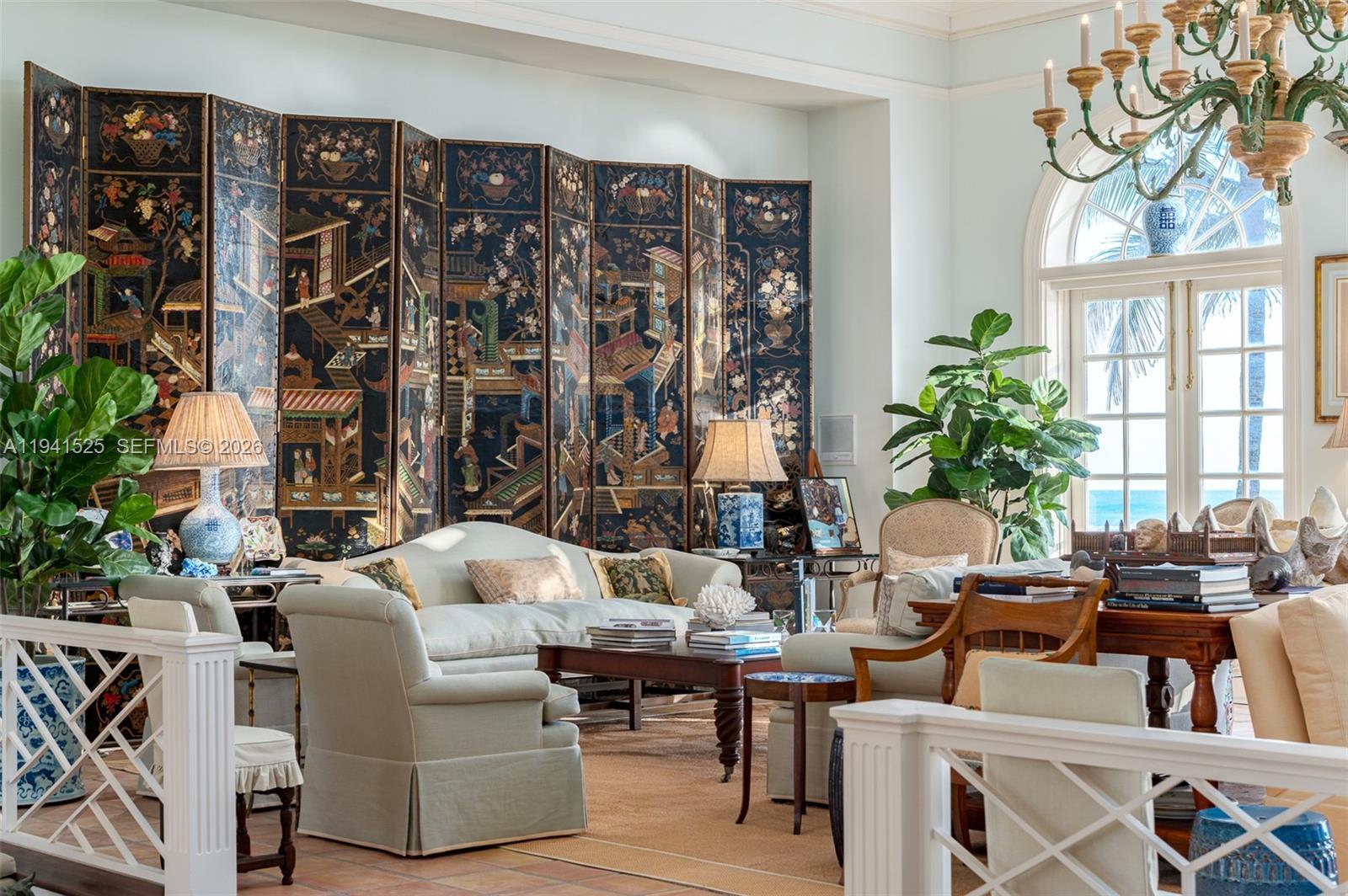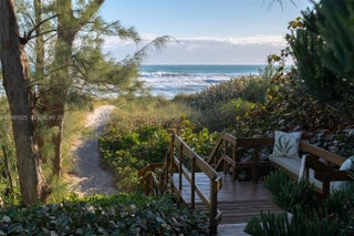 An exceptional opportunity to acquire an architecturally significant oceanfront property on Jupiter Island, with approximately 210 feet of oceanfront. The 4-bedroom, 5-bath main residence features balanced proportions, gracious scale, and ocean views from nearly every principal room, complemented by a separate oceanfront office that offers a private, light-filled workspace. The grounds are thoughtfully composed of formal yet relaxed island gardens, a large swimming pool, and a covered veranda with classic fretwork, creating a timeless setting for indoor-outdoor living and elegant entertaining. A separate service drive provides discreet access to a two-car garage, a golf cart garage, and a one-bedroom guest suite, ensuring privacy for guests. This oceanfront property is a must-see, presenting a rare opportunity to own a Jupiter Island residence with lasting appeal and thoughtful potential.