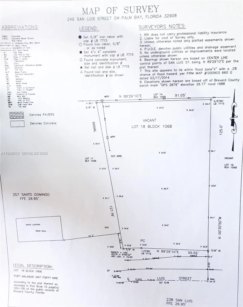 Build your dream home on this 0.24 acre vacant lot in Palm Bay, ideally located on a fully developed street surrounded by established homes. The property offers a survey on file, no HOA restrictions, and the freedom to design a custom residence to suit your lifestyle. Well and septic will be needed. Enjoy the flexibility of building in a high-demand, growing area with no association limitations. A rare opportunity to secure a ready-to-build homesite.