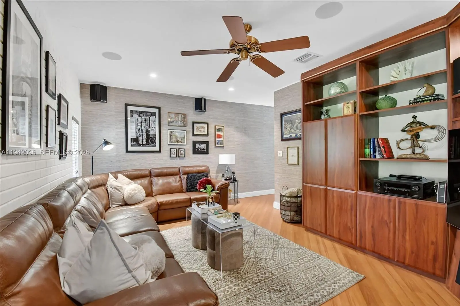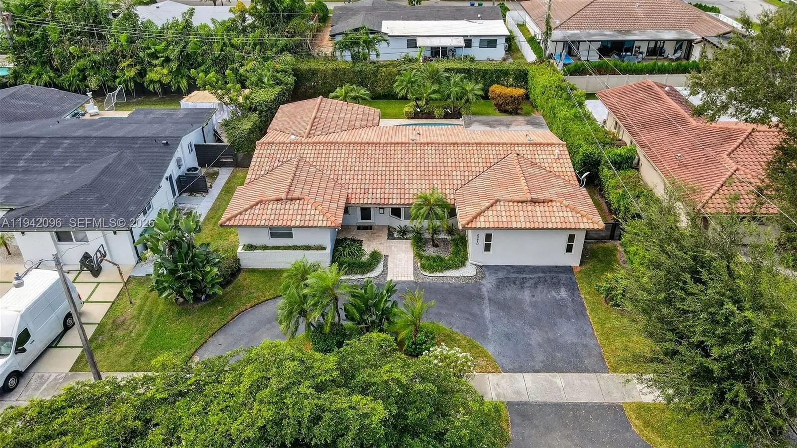 Welcome to this beautifully upgraded single-story residence offering timeless curb appeal located in the highly desired neighborhood of Highland Lakes situated on a quiet cul-de-sac. Property offers convenient access to nearby Aventura Mall shopping, top rated schools, great dining options, houses of worship, and major roadways while maintaining a peaceful residential feel. This inviting home features 3Bedrooms/3Full baths/library-Den (possible 4th bedroom), a super cozy family/media room which includes ceiling installed Atmos speakers. In addition, it offers a classic tile roof (pre-inspected and professionally maintained 2025), circular driveway, enhanced by mature palms and greenery. Home is equipped with impact windows & shutters, Generac generator that provides peace of mind during any storm, 4 year old high-efficiency HVAC with new ductwork. Oversized kitchen that serves as the heart of the home, offering custom wood cabinetry, granite countertops, stainless steel appliances, double wall ovens, ample storage, and generous counter space—ideal for both everyday living and entertaining. Three updated bathrooms bright open living room & dining areas are complemented by recessed lighting and natural light throughout. Step outside to a serene backyard retreat featuring a covered patio and a freeform pool surrounded by travertine-style decking and mature landscaping, creating a private oasis perfect for relaxing or hosting guests.