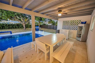 Stunning pool home on a huge corner lot! Beautifully remodeled with the perfect split floor plan, Italian porcelain floors, spacious living areas and tons of natural light. Bedrooms are all generously sized with the primary room offering French doors with access to the pool area. Modern open concept kitchen, ideal for the entertainer & complete with new cabinetry & top-of-the-line appliances, making it truly the heart of the home. Let the party spill out onto the gorgeous covered resort style patio transporting you to Santorini! Expansive lot with plenty of room for your boat, R/V or play area. Updates: impact windows, Roof from 2022, AC 2023 & updated electrical and plumbing. Located just minutes from Coral Reef Park this neighborhood provides access to excellent public / private schools.