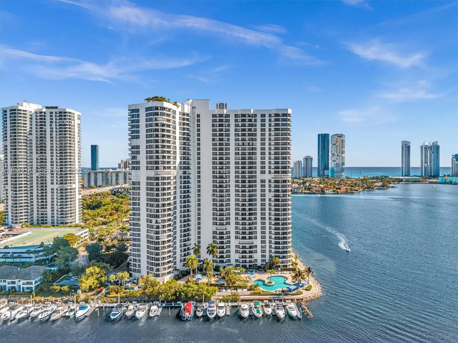 Live the life you love in this beautifully maintained 2-bedroom, 2-bath residence perched high in the desirable Mystic Pointe 500. From the moment you enter 2502, you’re welcomed by sweeping bay and Intracoastal views, abundant natural light, and a sense of calm that only waterfront living can provide. The spacious split floor plan is ideal for both everyday comfort and entertaining, featuring expansive living and dining areas with porcelain flooring and warm wood floors in the bedrooms. An upgraded kitchen and remodeled bathrooms add a modern touch, while hurricane shutters throughout provide peace of mind. Additional conveniences include an in-unit full size washer and dryer, assigned parking, and private storage. Mystic Pointe is one of Aventura’s most sought-after waterfront communities, offering true resort-style living with 24/7 security, concierge and valet services, marina access, a scenic waterfront walking path, pickleball and tennis courts, basketball, heated pool, fitness center, on-site restaurant, beauty salon, mini-market, and lushly landscaped grounds. Ideally located just minutes from Aventura Mall, pristine beaches, fine dining, houses of worship, and major roadways — this is South Florida living at its best.