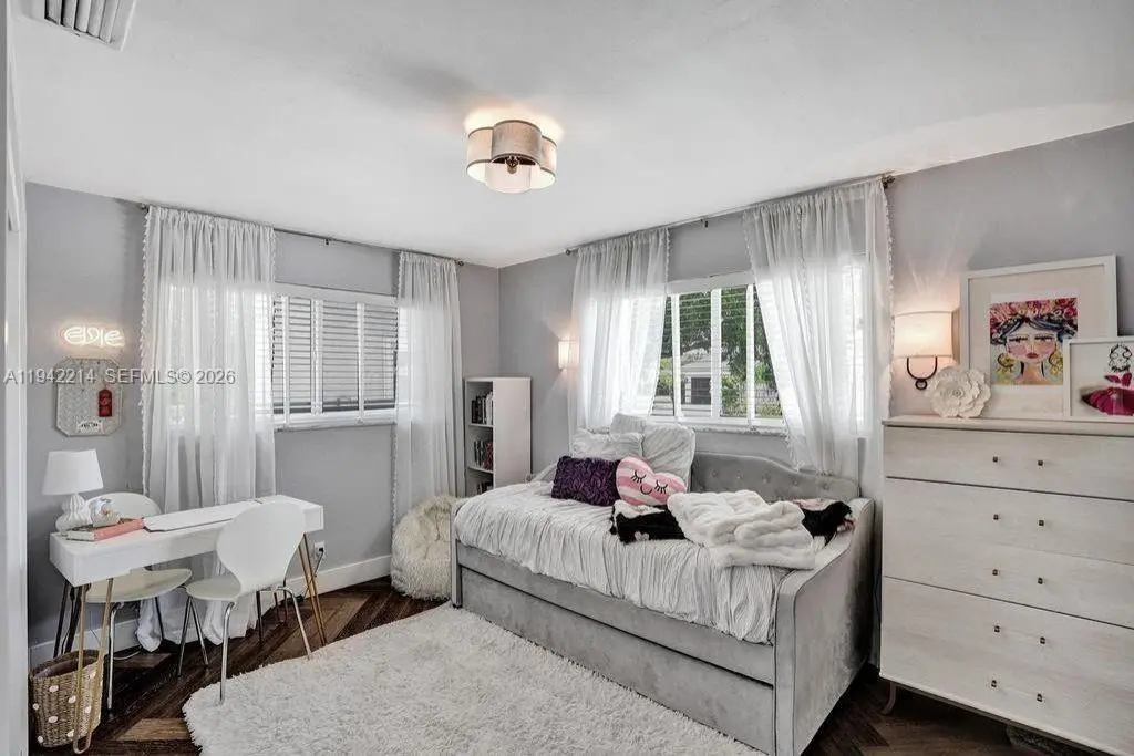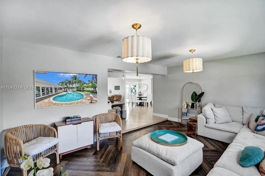 This stunning oasis will transport you to a mid century tropical paradise. This bright 3 bedroom home in Imperial Point offers crisp finishes, open living spaces and is lined with impact windows and doors. The generous floor plan is flooded with natural light and has a renovated kitchen and bathrooms, tile & wood laminate floors & custom lighting. The beautiful back yard is complete with a sparkling pool that will make you feel like you're on vacation every day. Home also has Tesla charger, built-ins in every closet, Built out pantry, laundry room & tankless hot water heater. Amazing location - a few miles to the beach & close to great schools. Rent includes pool and lawn maintenance.