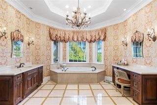 BRAND NEW ROOF! Waterfront estate built by renowned Turtle Beach construction of the Palm Beaches. Located in the prestigious Harbour Isles of North Palm Beach. Grand entrance with soaring floor-to-ceiling windows looking out across the sparkling infinity edge pool and spa. This house is a boat owners dream with 90 feet of dock. The home's custom finishes, marble floors, and detailed trim & moldings set an elegant tone throughout, while the home's countless custom features make entertaining effortless: home theater room, impressive chef's kitchen, outdoor kitchen, living room gas fireplace with full bar adjacent. The house has a commercial grade elevator, wood paneled office with fireplace, upstairs & downstairs laundry rooms.