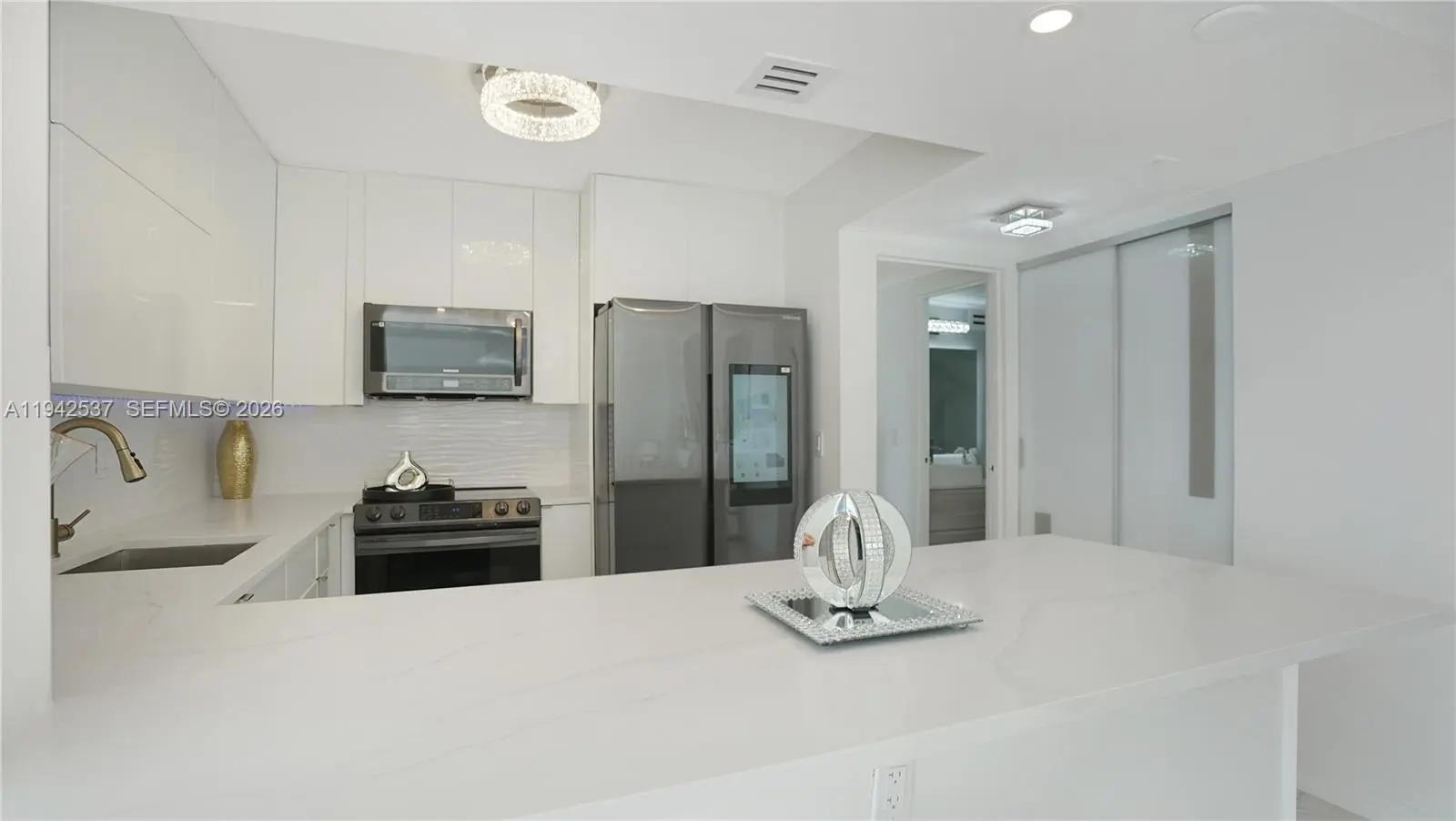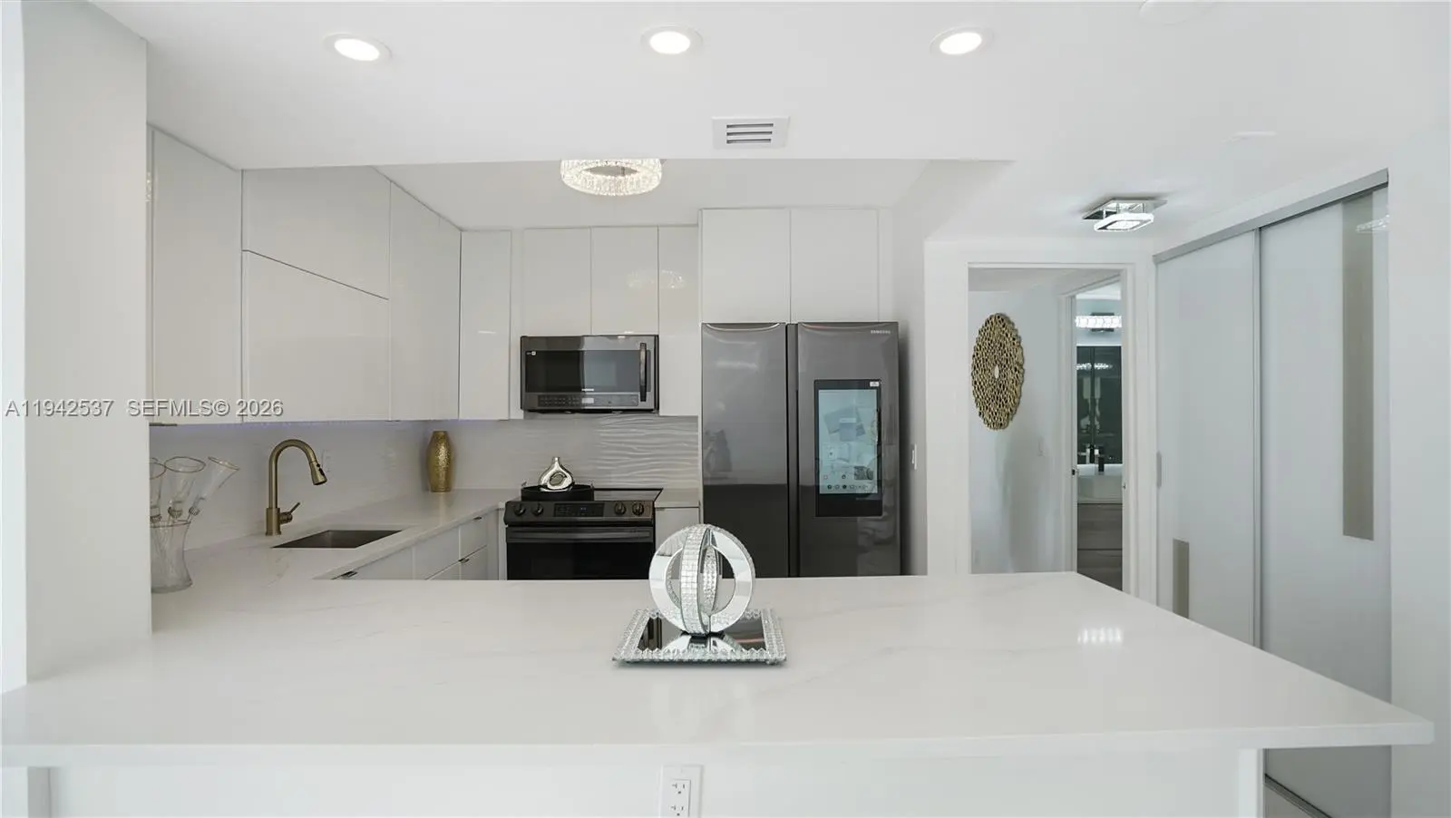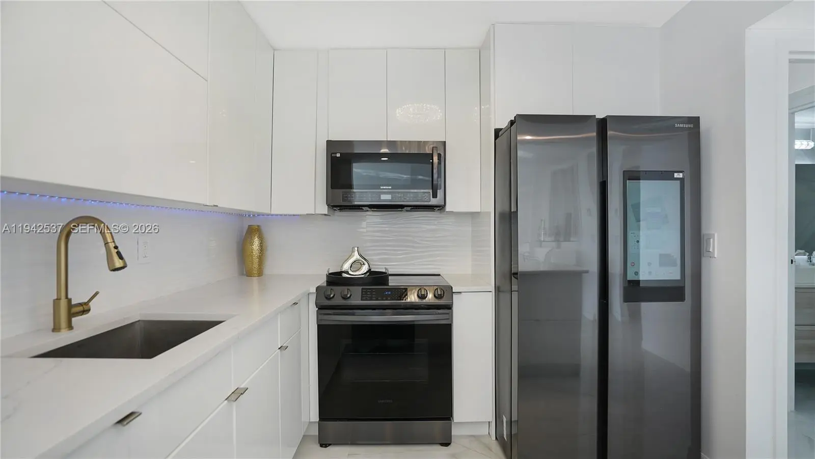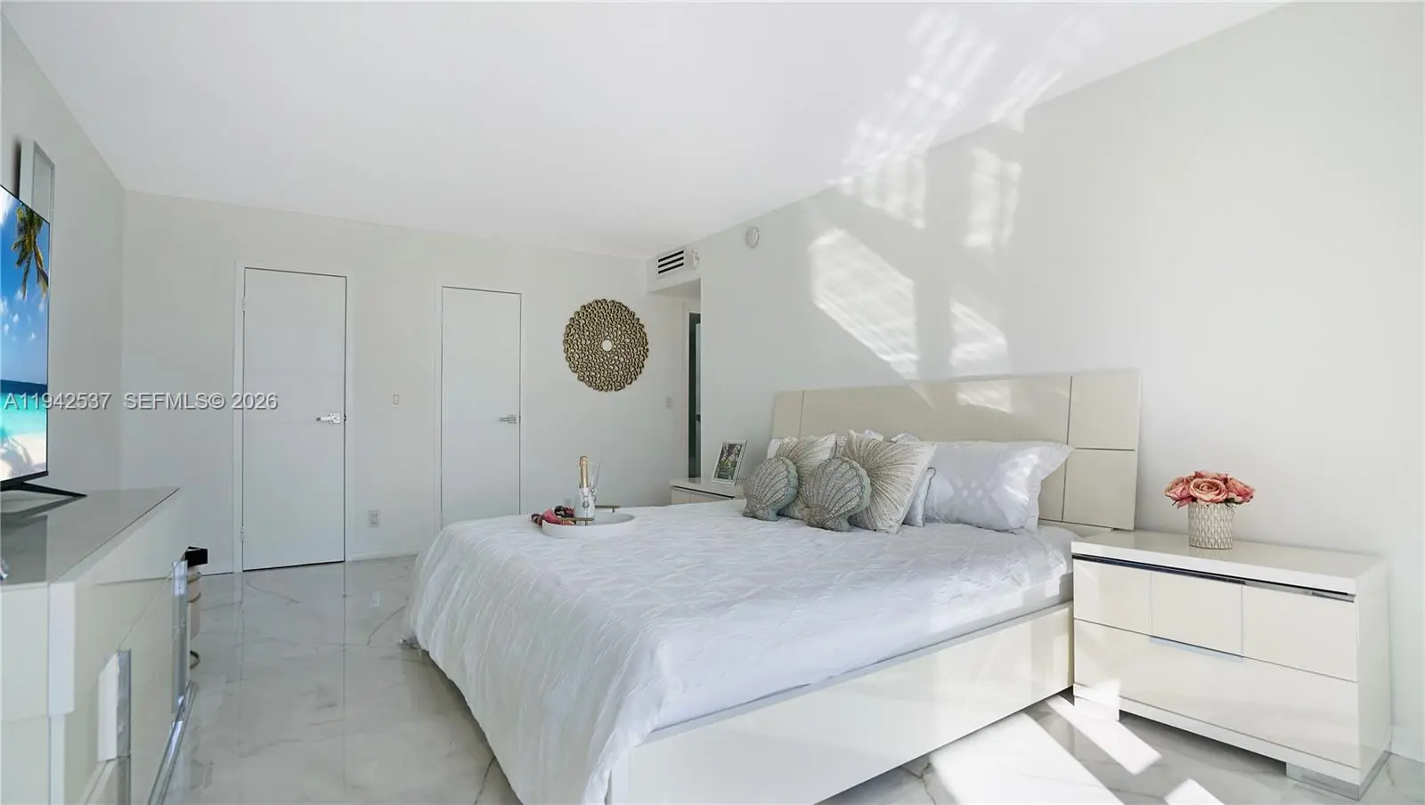 MODERN COASTAL LUXURY WITH OCEAN & INTRACOASTAL VIEWS! DIRECT BEACH ACCESS! Luxury ocean & Intracoastal view condo in a boutique-style building. Fully renovated 2BD/2BA residence featuring a bright, open layout with floor-to-ceiling windows and spa-like water views. Massive primary bedroom with huge custom-built walk-in closet, custom cabinetry, and private balcony. Finished with 36” Italian tile throughout, new closet doors, and abundant storage. Chef’s kitchen offers European-style cabinetry, quartz countertops & full backsplash, under-cabinet multi-color LED lighting, and high-end smart Samsung appliances, including touchscreen refrigerator with app-controlled features. Spa-inspired bathrooms include soaking tub, multi-jetted rain shower, illuminated vanities, and modern fixtures. Furnished with upscale modern furniture and designer accents throughout.Resort-style amenities include 24-hour security, heated pool, tennis courts, fitness center, billiard room, and renovated lobby. Building has completed 40 and 50-year certification, is freshly painted, and offers NO special assessments. One of the lowest oceanfront associations at $600/m, offering exceptional value for luxury coastal living.