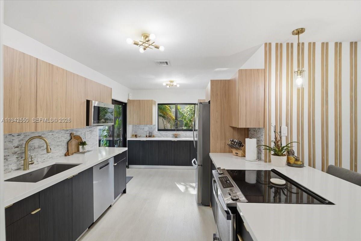 Beautifully remodeled 4-bedroom, 2-bath ranch-style home featuring a bright open floor plan and sleek modern finishes throughout. The 4th bedroom is being used as a den/TV room. The European-inspired kitchen is a showstopper, equipped with state-of-the-art appliances and designed for both everyday living and entertaining. Enjoy peace of mind with a brand-new roof, impact windows and doors, a stunning custom front door, newer A/C, and tankless water heater. Step outside to a cozy backyard oasis with a gorgeous pool area, perfect for relaxing or hosting guests. Additional features include an EV charging station and exceptional curb appeal. Located in a private neighborhood with easy access to I-95 and just minutes from Wilton Manors, dining, shopping, and more. This move-in-ready home offers the perfect blend of style, comfort, and convenience.