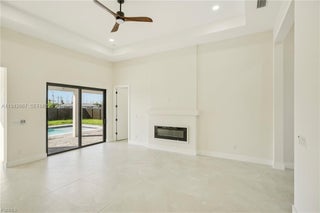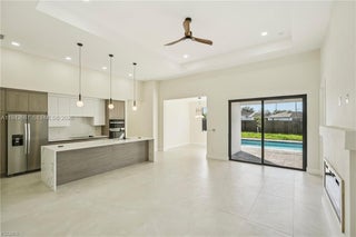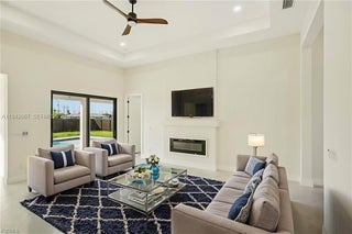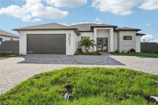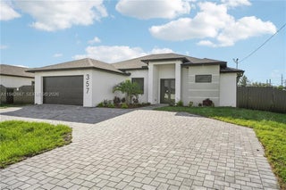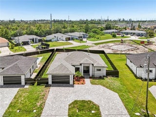 This stunning new construction home offers the perfect blend of elegance, comfort, and Florida lifestyle living. 4 Bedrooms | 2 Full Bathrooms | 2-Car Garage with over 1810 Sq Feet of Air-Conditioned Living Space. Concrete Block Construction with Hurricane-Impact Windows & Sliders Beautifully Landscaped, Fully Fenced Backyard NOT IN A FLOOD ZONE City Water & Sewer. Gorgeous brick circular driveway. Sparkling saltwater pool with sun-shelf for lounging, Outdoor shower and outdoor kitchen with sink, LED lighting & dual fans. Fully fenced yard with plenty of space. Elegant tray ceilings and electric fireplace in the living area. 24” x 48” Porcelain Tile Flooring throughout the entire home. Chef’s kitchen with: Expansive quartz waterfall island with built-in wireless chargers. Double ovens, convection microwave, and stainless-steel appliances. White & brown-toned cabinetry with LED lighting accents. Formal dining room for family gatherings and entertaining Stylish interior doors throughout the home. Remote-controlled ceiling fans in every room for comfort and convenience. Spa-Like Bathrooms. LED-lit mirrors and floor-to-ceiling tiled glass showers. Modern floating vanities for a clean, contemporary look. Primary suite includes Tray ceiling. His & Her walk-in closets. Double vanity with his & her sinks. Additional Upgrades: Epoxy-finished garage floors. Energy-efficient LED lighting throughout. Beautifully landscaped grounds. Close to shopping, dining, and entertainment.