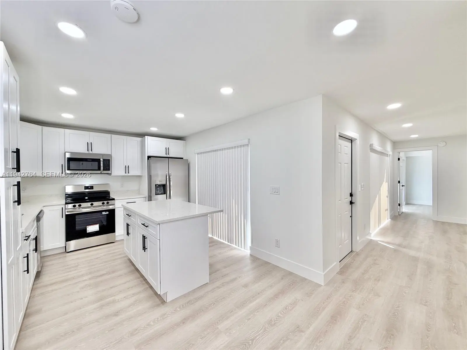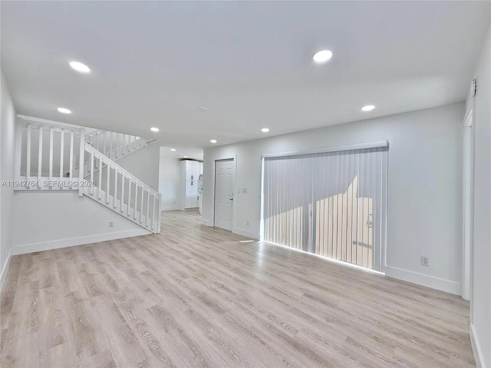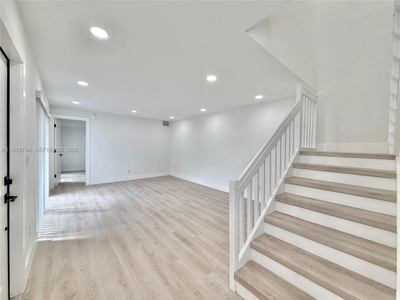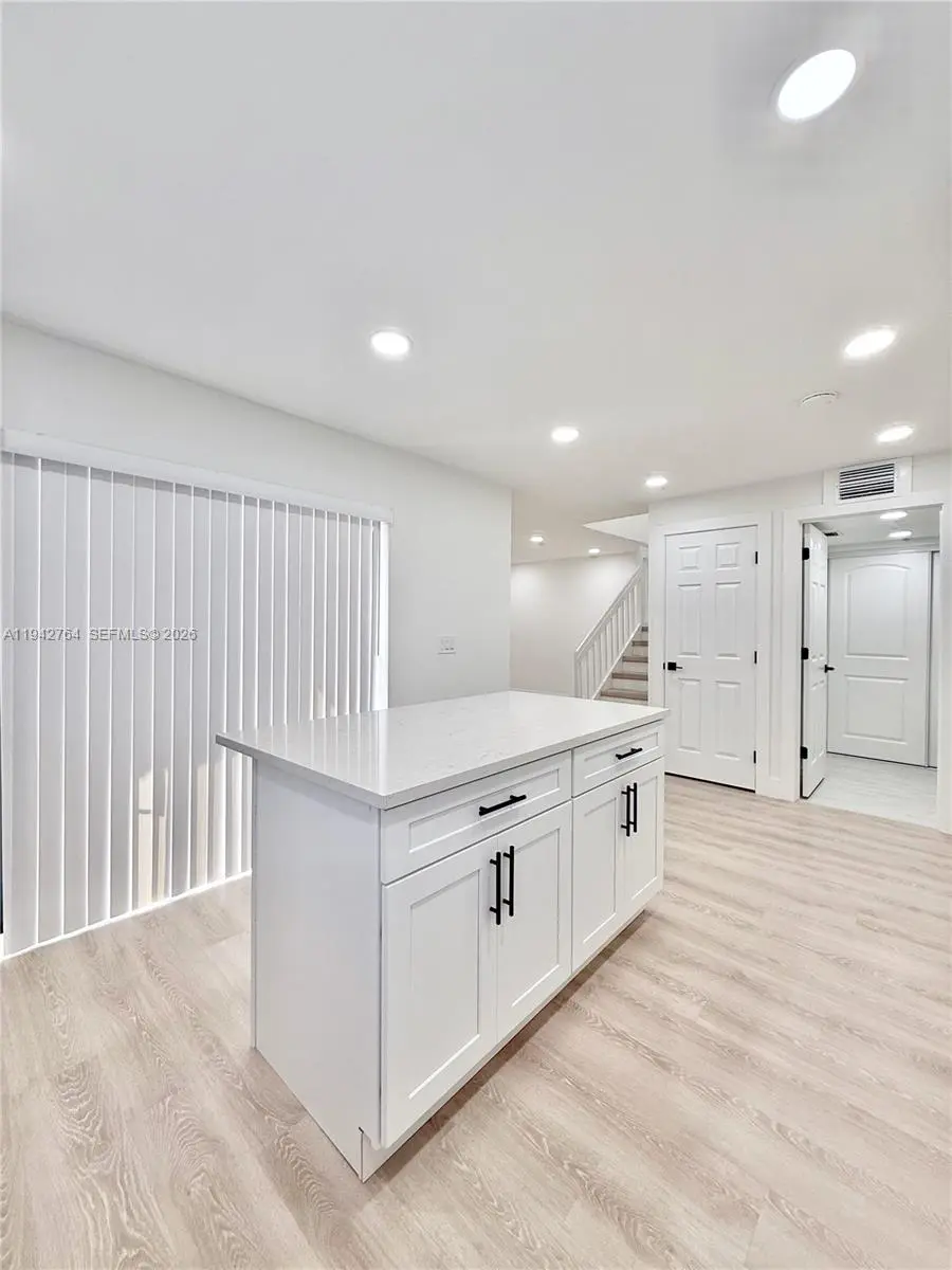 Fully impact-protected throughout, this move-in-ready 3-bedroom, 2.5-bath townhome is centrally located and offers low monthly association dues. The freshly painted interior features white cabinetry and vanities, Calacatta quartz countertops in the kitchen and bathrooms, waterproof luxury vinyl flooring, and porcelain tile throughout all bathrooms. The kitchen includes an island, pantry, and new stainless-steel appliances. One bedroom is located on the first floor, with two upstairs bedrooms offering balcony access. The primary suite includes his-and-her closets and a double sink vanity with walk-in shower. Newer A/C, water heater and new washer and dryer. Two assigned parking spaces directly in front plus plenty of guest parking.