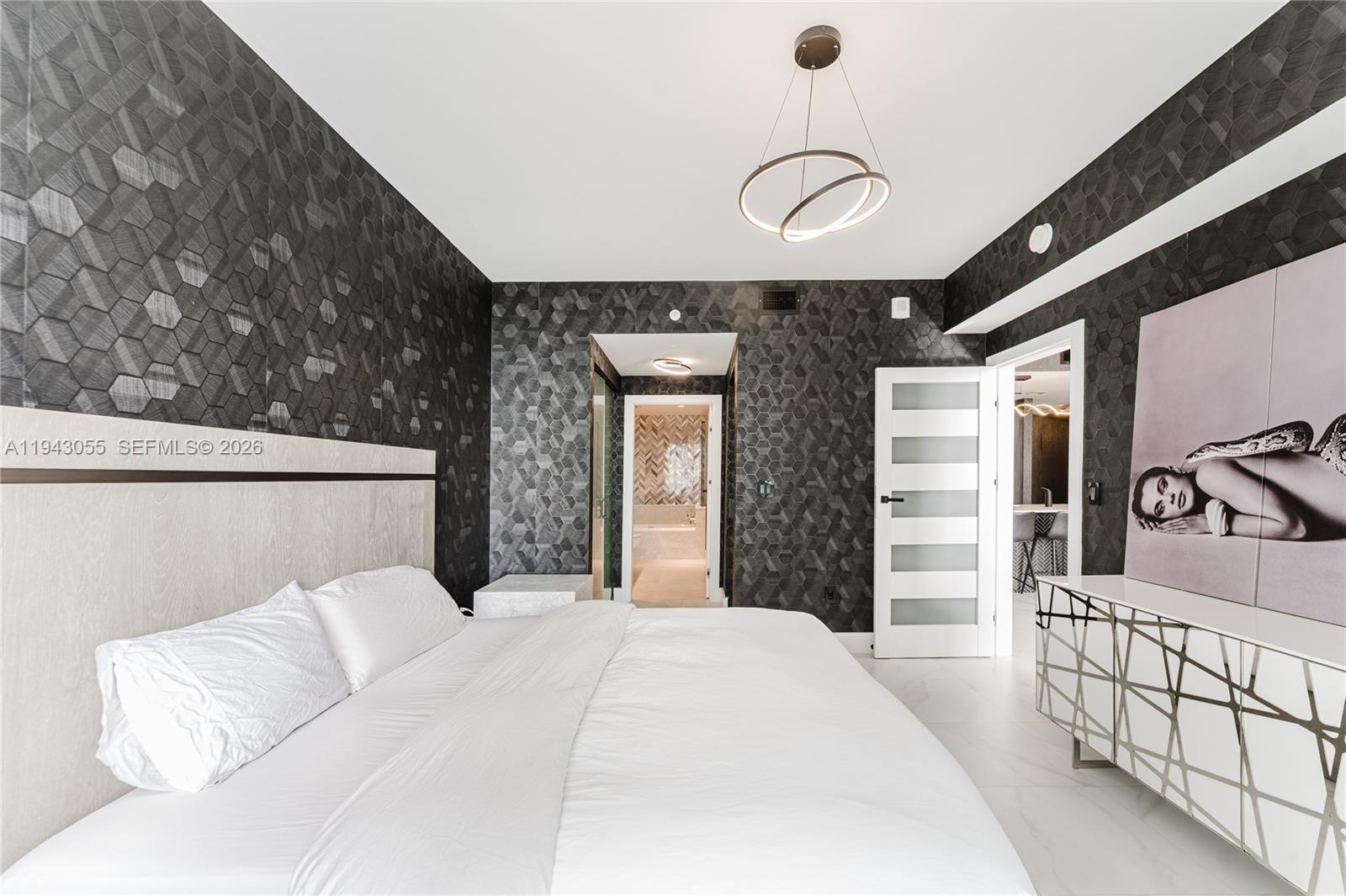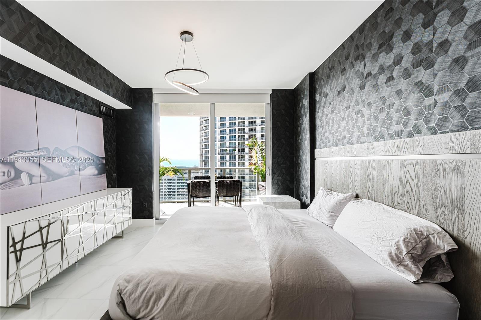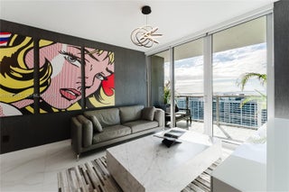 Experience elevated living in this stunning 41st-floor residence at Aria On The Bay w/private elevator to your unit. Enjoy floor-to-ceiling glass offering bay and city skyline views. This 1-bedroom plus den, 2-bath home offers a private foyer, tiled terrace, glass closet doors throughout, Kinetico drinking water system, towel heaters, and wallpaper throughout. 4108 comes furnished with tasteful pieces from Arhaus, Restoration Hardware, and Modloft. Indulge in resort-style amenities and immerse yourself in the vibrant Edgewater lifestyle with Margaret Pace Park across the street, and just minutes from Miami’s best dining, arts, and entertainment and a central location near Midtown, Wynwood, Downtown, Design District, Brickell and Miami Beach. Fully funded reserves. Owner agent seller.