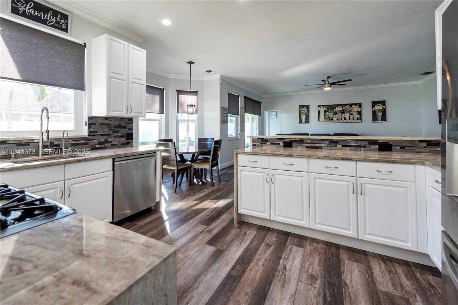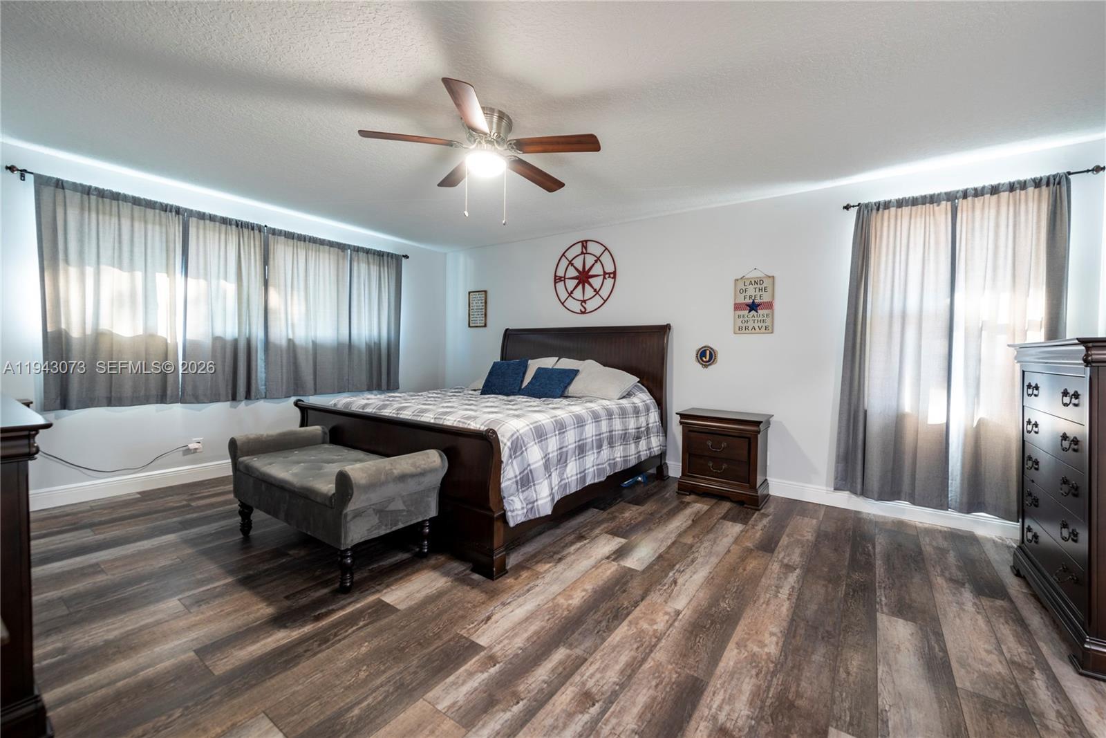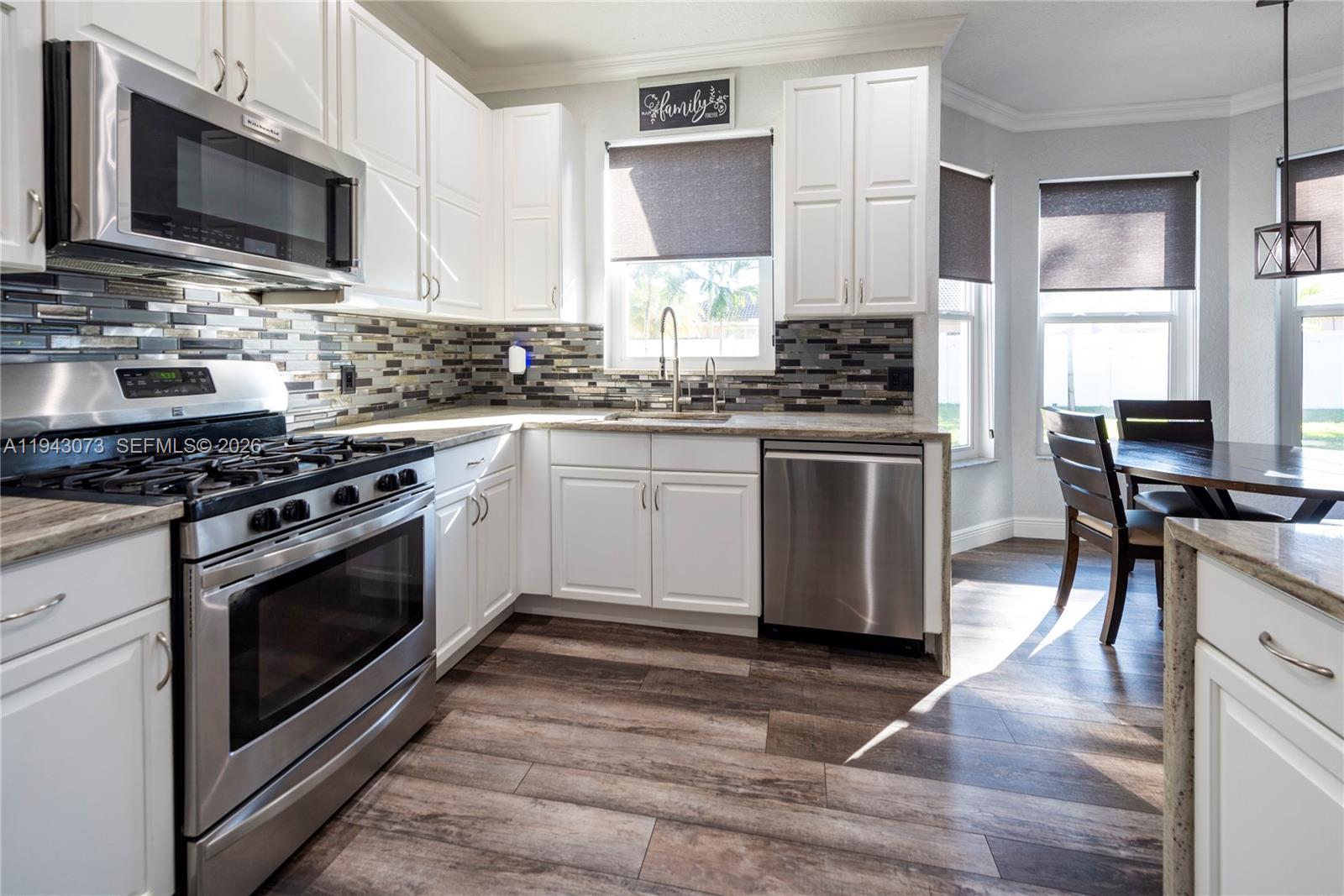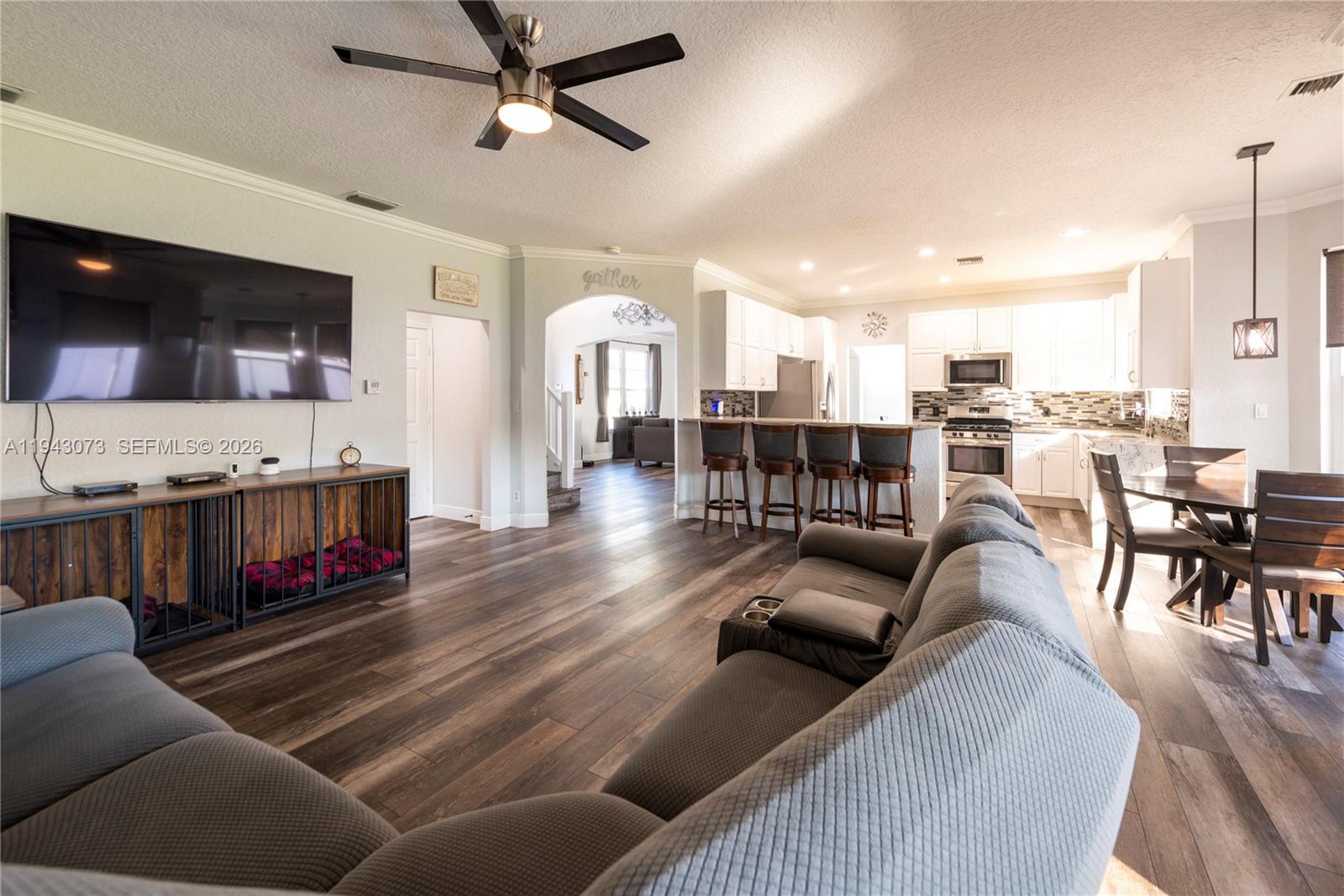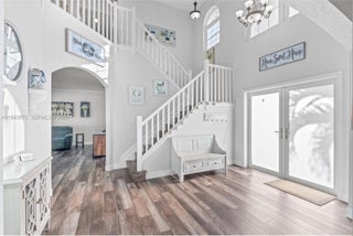 Welcome to this beautifully upgraded residence in the sought after gated community of Pembroke Falls. This 2 story home offers an ideal layout with 1 bedroom and full bath on the main level and 4 spacious bedrooms upstairs, as well as an additional bedroom/den/office. The primary suite features walk-in closet, soaking tub, walk-in shower, and dual vanities. Notable upgrades include a newer roof and gutters, impact windows and doors, an extended driveway, dishwasher, washer, and dryer, all new flooring, updated bathrooms, and custom window treatments on the first floor. Additional highlights include a gas stove with a gas hookup extending to the patio for a summer kitchen, oversized backyard has new PVC fencing, ideal for entertaining. COMMUNITY OFFERS NATURAL GAS, A RESORT-STYLE REC CENTER, POOL, CLUBHOUSE, TENNIS & MORE * HOA INCLUDES CABLE, FIBER INTERNET, 24HR SECURITY & MORE! Professional photos will be uploaded Saturday