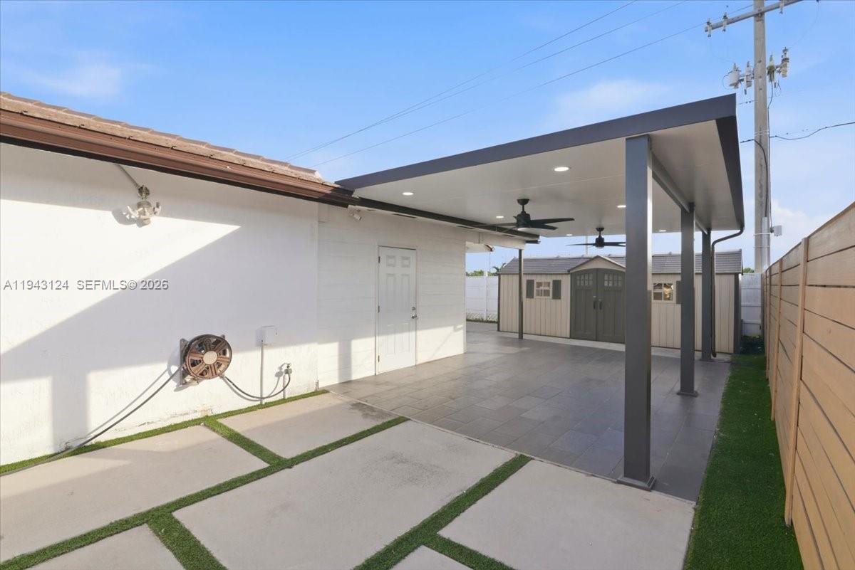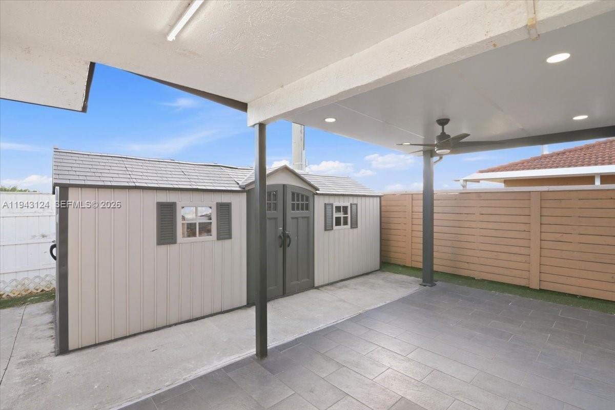 Fence, Security/High Impact Doors, Patio, Shed