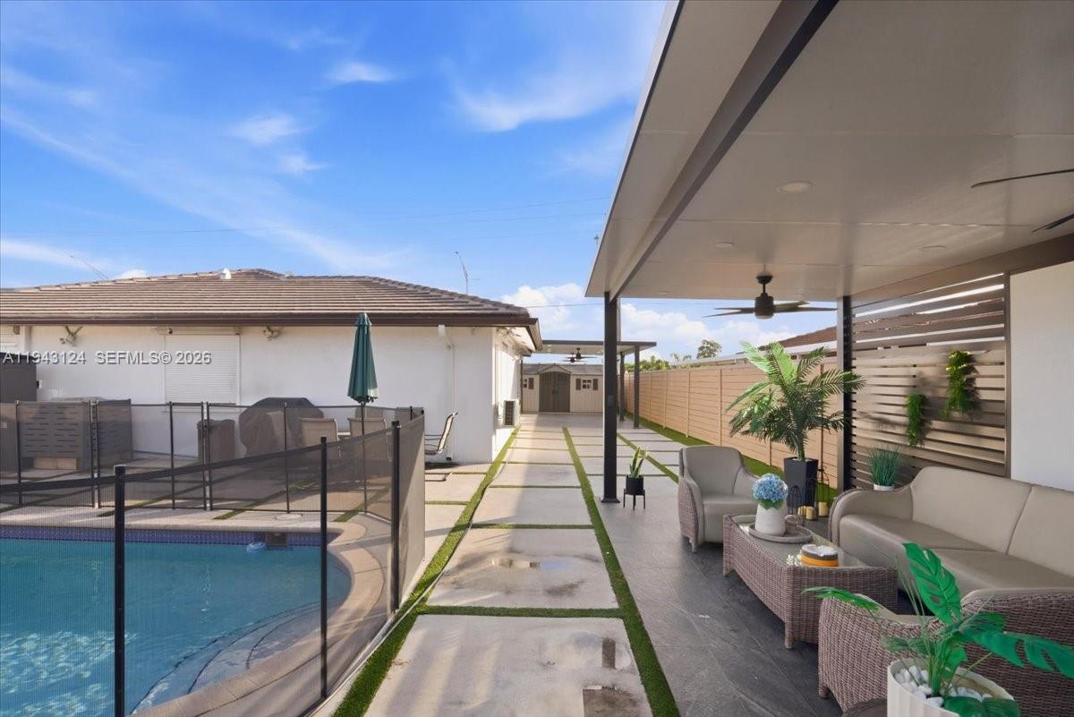 Only two months to move in for qualified tenants — pets welcome. Rare opportunity in today’s rental market. This beautifully remodeled, fully detached home offers modern comfort inside and out, featuring an open-concept kitchen, zebra blinds, and impact doors and windows providing sound insulation and hurricane-season peace of mind. The versatile garage is ideal as a home office or guest space, and the primary bedroom includes a split A/C for personalized comfort. Enjoy a private fenced backyard with two terraces, a pool with maintenance included, and an oversized driveway with ample parking plus an EV charger. Ideally located with quick access to the Turnpike. Motivated landlords seek a solid, responsible family ready for immediate occupancy. Strong income, credit & background review required.